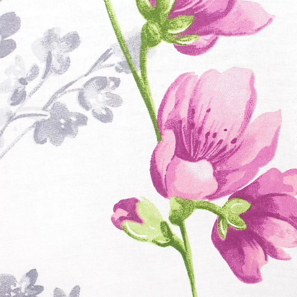 - Housse de couette 140×200 cm 100% coton 57 fils/cm² – PRETTY Parure de lit 100% coton avec des motifs de grandes fleurs dans des nuances de rose, violet et vert sur fond blanc.