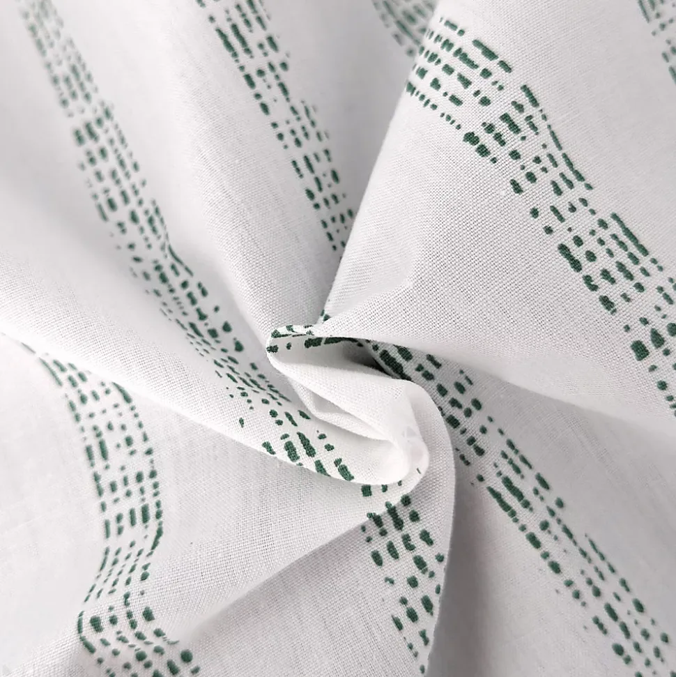 - Parure de lit 100% percale de coton avec un motif géométrique imprimés de fines rayures vert kaki texture effet usée sur fond blanc.