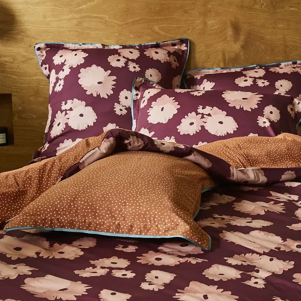 - Achetez la housse de couette satin de coton COUP DE FOUDRE prune/caramel avec des motifs floraux.