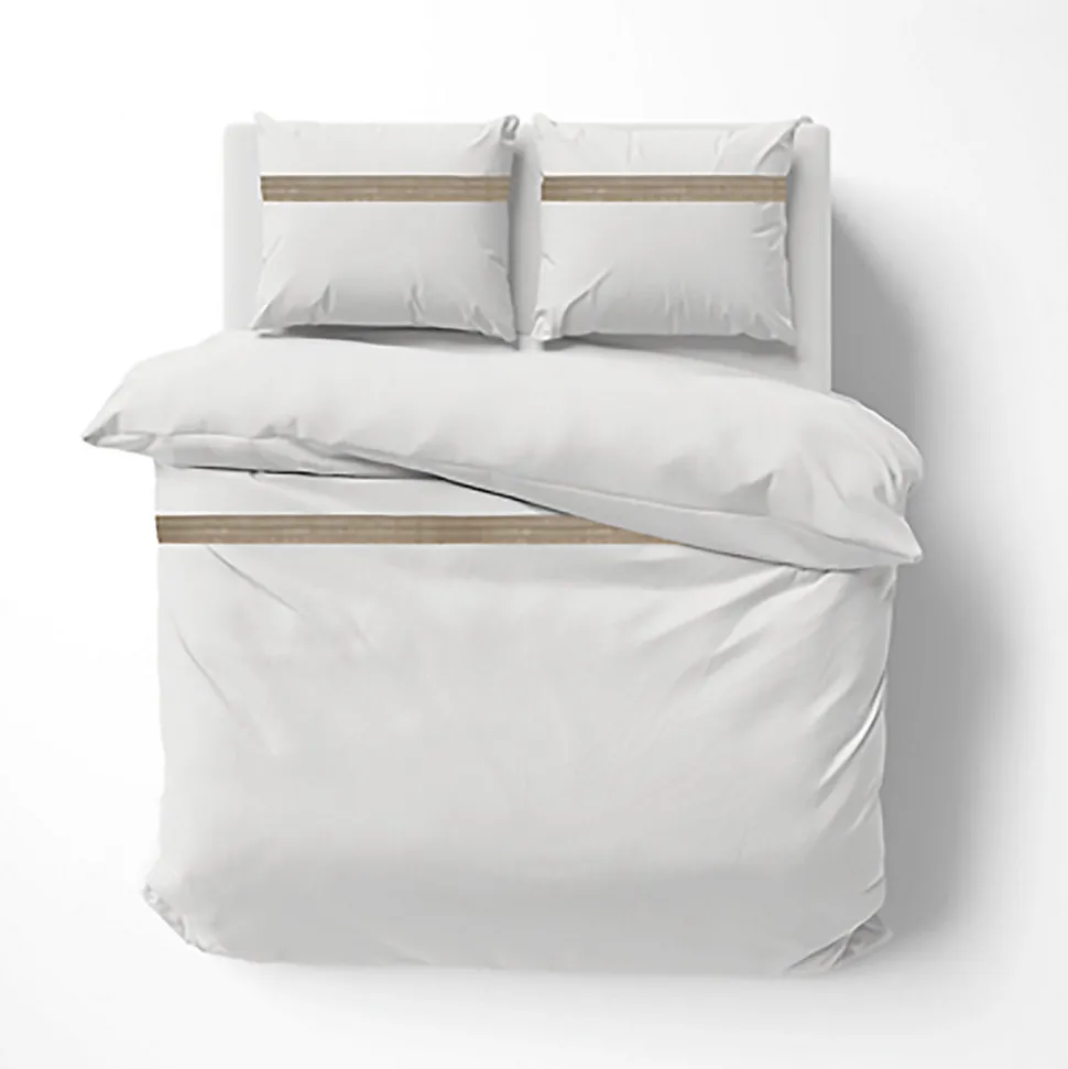 - • Confort naturel grâce au coton 57 fils/cm² doux et respirant• Design raffiné : blanc pur rehaussé d’une bande en lin naturel• Parure complète : housse + 2 taies assorties• Adaptée aux grands lits 2 personnes (king size)• Entretien simple et tenue durable lavage après lavage