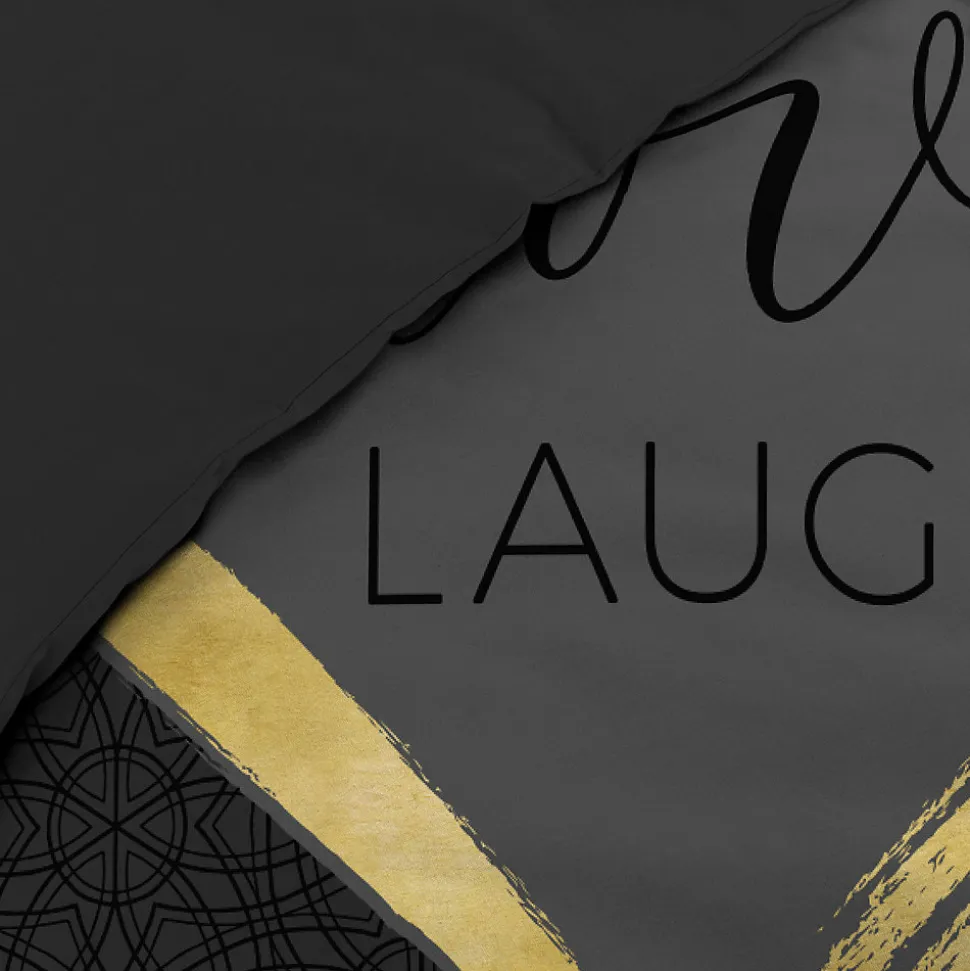 Apportez une touche romantique et moderne à votre chambre avec cette parure de lit CRAZY LOVE. Réalisée en pur coton 42 fils/cm², elle garantit confort, douceur et résistance pour un usage quotidien.Avec son motif placé en grand cœur doré et message « Live, Love, Laugh », cette parure apporte du style et une note élégante à votre espace nuit. La housse de couette est dotée d’une fermeture à boutons pratique et discrète.• Composition : 100 % coton – 42 fils/cm²• Dimensions housse : 240 x 220 cm – lit 2 personnes standard• Dimensions taies : 2 taies 63 x 63 cm incluses• Motif : imprimé placé « Crazy Love » – cœur + texte doré• Finition : fermeture à boutons• Entretien : lavable en machine à 40° – séchage et repassage faciles