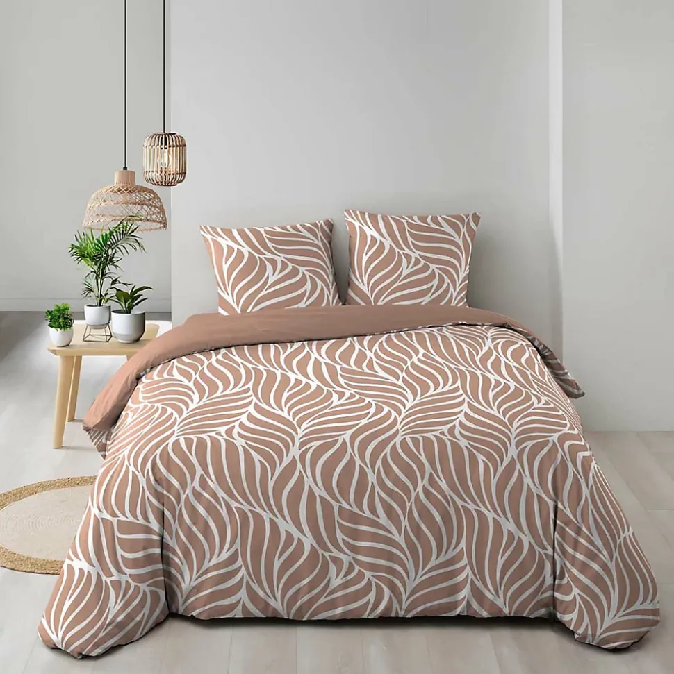 - • Motif végétal élégant et tendance• Coloris mocha chaud et raffiné• Coton 57 fils respirant et confortable• Fermeture boutons pression pratique et discrète• Parure complète prête à l’emploi• Confort idéal en toute saison