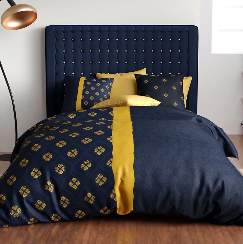 Très belle housse de couette NIL pour lit 2 personnes de dimensions 240×220 cm en 100% coton au tissage très serré 57 fils avec ses 2 taies d’oreillers 63×63 cm.Dimensions housse de couette : 240×220 cmDimensions des taies d’oreiller : 63×63 cmFinition : housse de couette fermeture boutons et taies portefeuilleMatière : 100% coton 57 fils/cm² En coton; un tissu souple et résistant de qualité supérieure grâce à son tissage ultra serré (57fils/cm2) constitué de fils de coton. Plus le nombre de fils au cm2 est élevé; plus le tissage est de qualité.Housse de couette et taies d’oreiller lavable à 40 degrés.Produit certifié Oeko-Tex; le label garantit que les articles testés et certifiés ne présentent pas de substances nocives pouvant nuire à la santé.