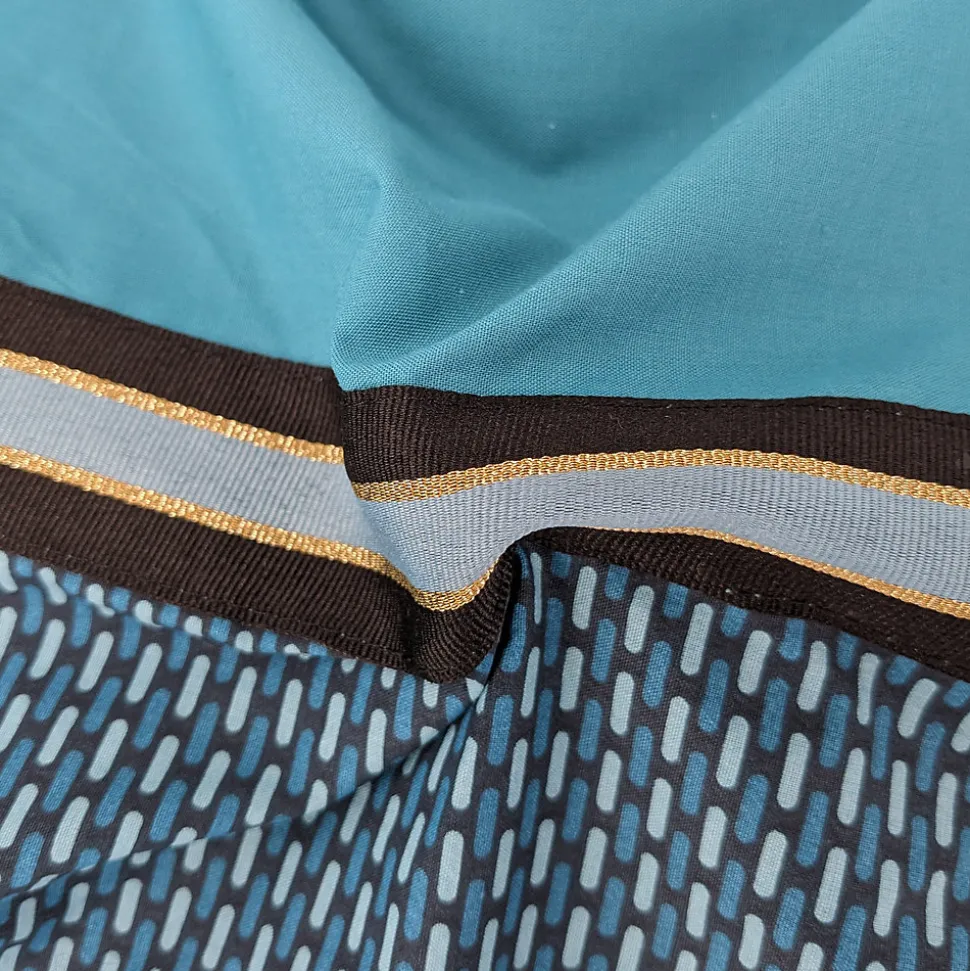 Housse de couette 260×240 cm percale 80 fils/cm² GUSTAV Emeraude avec des petits motifs géométriques imprimés associé à un élégant galon lurex l’ensemble dans des tons de vert émeraude et marine.