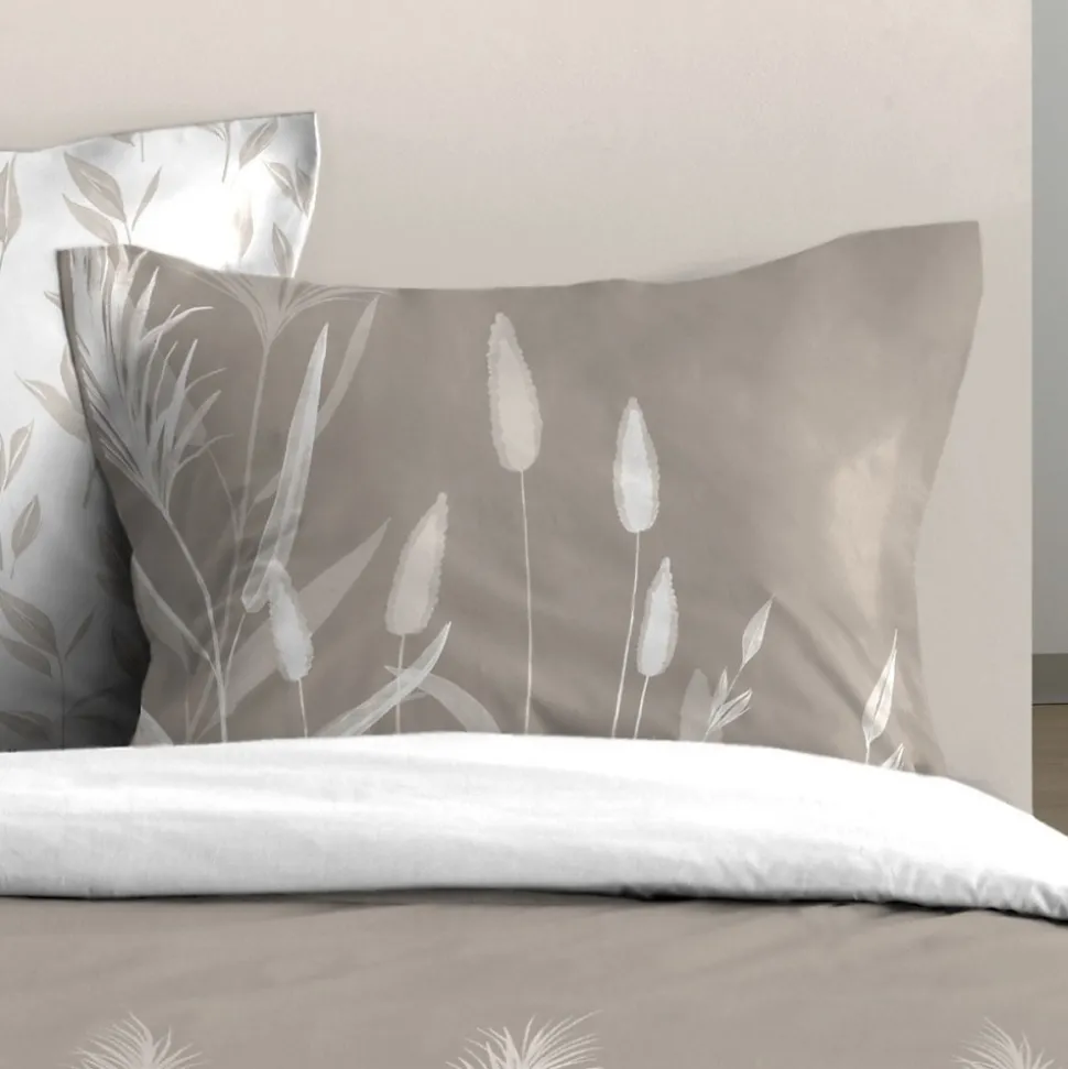Très belle housse de couette PAMPA pour lit 2 personnes de dimensions 260x240cm en 100% coton au tissage très serré 57 fils avec ses 2 taies d’oreillers 63×63 cm. Information sur la housse de couette PAMPA:1 x housse de couette 260x240cm finition boutons2 x taies d’oreiller 63×63 cmComposition : 100% coton 57 filsProduit certifié Oeko-Tex : Garantit que les articles testés et certifiés ne présentent pas de substances nocives pouvant nuire à la santé.