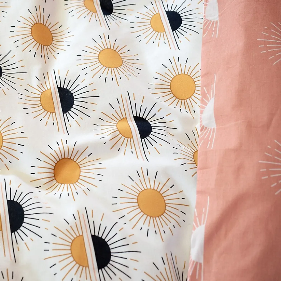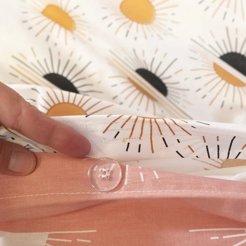Avec ses micro motifs graphiques; ce modèle ensoleillé TERRAMEA offre une ambiance sophistiquée librement inspiré des années folles.Cette parure de couette TERRAMEA contient : 1 housse de couette 260×240 cm avec fentes passe mains et fermeture boutons.2 taies 63×63 cm100% coton adouci; offre un toucher ultra doux et améliore sensiblement le confort.Tissage serré 57 fils/cm2; qualité supérieure; excellente résistance.Standard OEKO-TEX Made in green. Label de confiance garantissant l’absence de substances nocives et une fabrication par des entreprises responsables.Label Better Cotton Initiative. En achetant ce produit, vous soutenez la production durable du coton au travers de la Better Cotton Initiative.