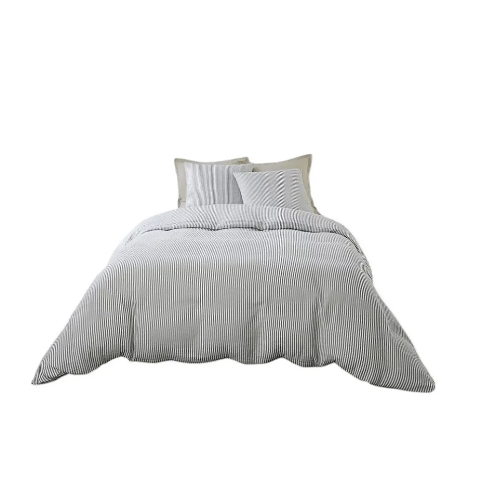 Apportez une touche de douceur et de modernité à votre chambre avec cette parure housse de couette 3 pièces Imprimé Soleïs en 100% gaze de coton. Son motif rayé sobre et sa couleur gris perle illuminent votre espace tout en créant une ambiance apaisante et élégante. ✔️ Couleur : gris perle✔️ Taille : 240×260 cm (parfaite pour lits king size ou grands lits)✔️ Contenu : 1 housse de couette + 2 taies d’oreiller assorties✔️ Matière : 100% gaze de coton – ultra douce, légère et respirante✔️ Finition : boutonnière dissimulée pour un rendu élégant et minimaliste✔️ Certification : Oeko-Tex, sans pour la santé✔️ Conseils d’entretien : lavage en machine à 30°, ne pas blanchir, ne pas sécher en machine, ne pas nettoyer à sec ✨ Pourquoi choisir cette parure Soleïs ? Confort naturel et respirant Look moderne e…