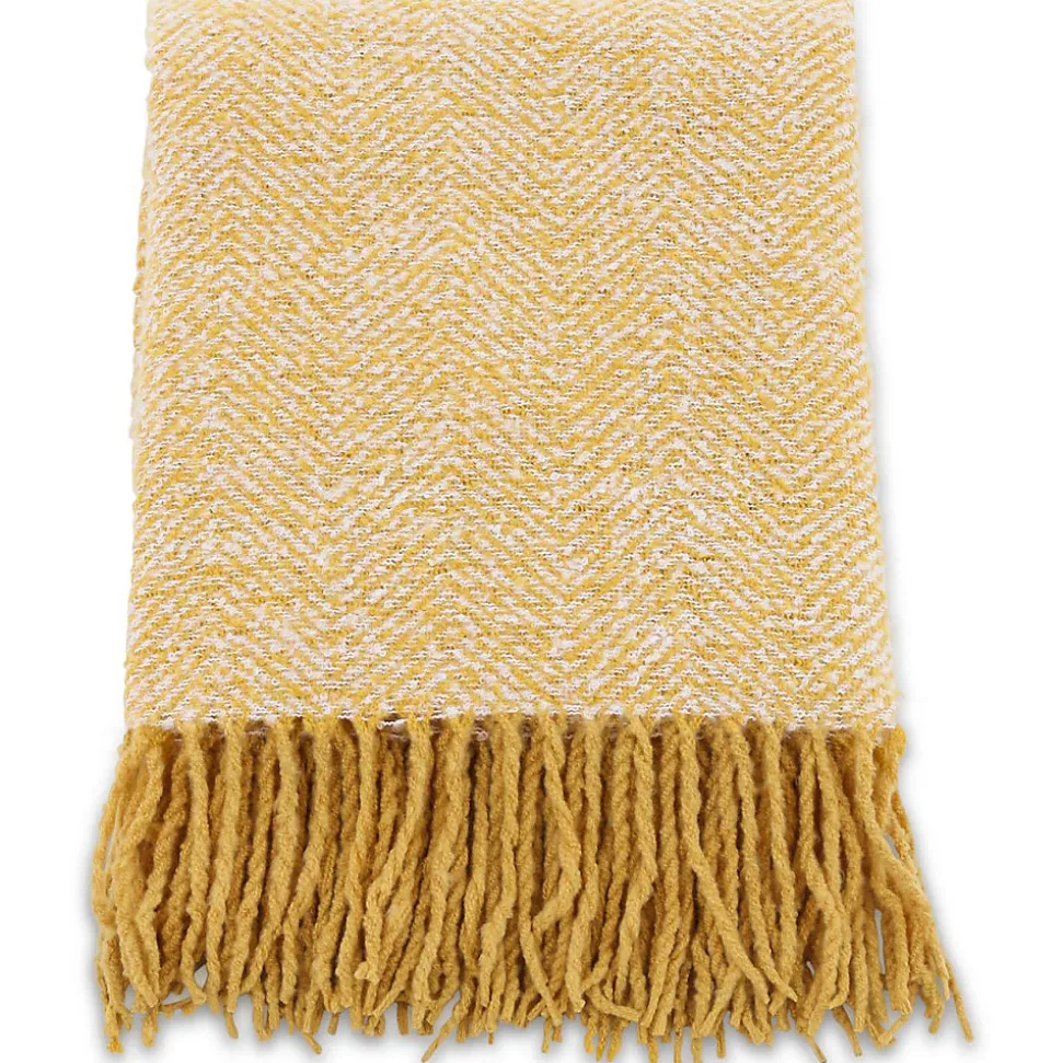 Aspect : Coloris = Blanc Jaune • Matériau principal = Polyester • Dimensions : Hauteur (en cm) = 0,50 • Longueur (en cm) = 170 • Profondeur (en cm) = 130 • Jeté de canapé à motif chevrons Toby 170 x 130 cm
