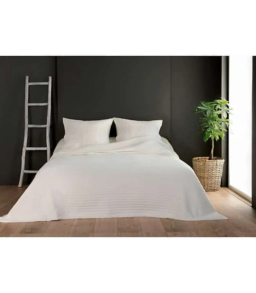 Jeté de lit ivoire capitonné style boutis – 180x240cm – Ecru