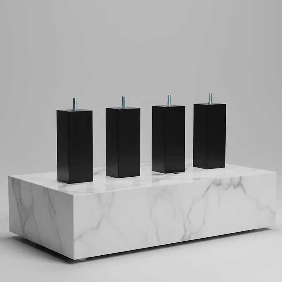 Donnez un style à la fois sobre et chic à votre sommier avec les pieds de lit carrés en bois noirs. En plus d’assurer une bonne stabilité à votre literie, ils favoriseront son aération grâce à la surélévation qu’ils apportent. Confort et hygiène garantis !CARACTERISTIQUES :Hauteur : 10 cmArête : 5 cmDiamètre de la tige filetée : 8 mm (standard)Matière : BoisCouleur : NoirMontage : A visserFabrication : FrançaiseGarantie : 2 ansPOINTS FORTS :Confort : Arête de 5 cm assurant une bonne stabilité du couchage.Hygiène : Hauteur de 10 cm qui permet de favoriser l’aération de la literie grâce à la surélévation qu’elle offre.Design élégant : Forme carrée et couleur noire pour s’accorder avec tous types de sommiers et d’intérieurs.Compatibilité : Tige filetée de 8 mm de diamètre (standard) permettant aux pieds de s’adapter à la majorité des sommiers.