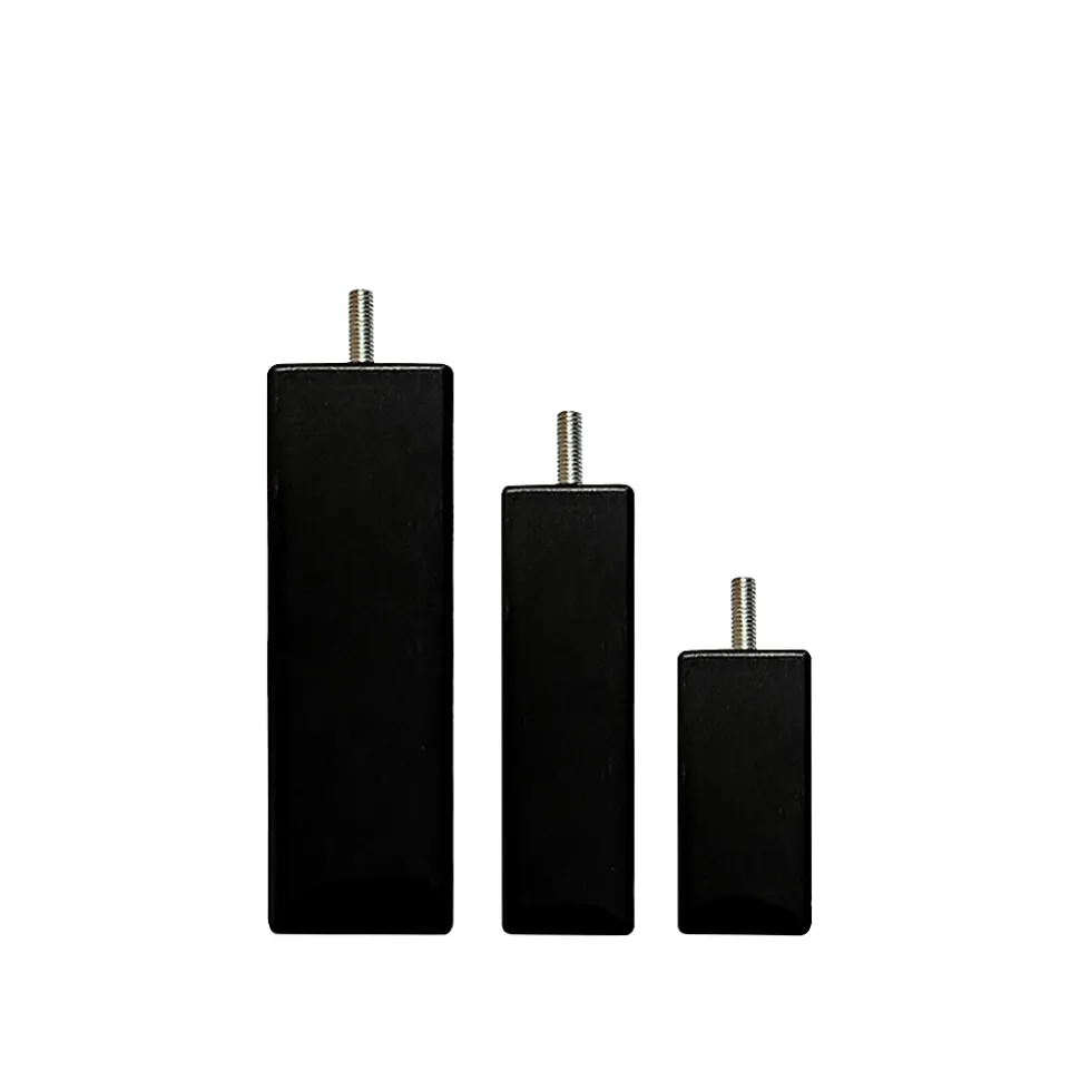 Donnez un style à la fois sobre et chic à votre sommier avec les pieds de lit carrés en bois noirs. En plus d’assurer une bonne stabilité à votre literie, ils favoriseront son aération grâce à la surélévation qu’ils apportent. Confort et hygiène garantis !CARACTERISTIQUES :Hauteur : 15 cmArête : 5 cmDiamètre de la tige filetée : 8 mm (standard)Matière : BoisCouleur : NoirMontage : A visserFabrication : FrançaiseGarantie : 2 ansPOINTS FORTS :Confort : Arête de 5 cm assurant une bonne stabilité du couchage.Hygiène : Hauteur de 15 cm qui permet de favoriser l’aération de la literie grâce à la surélévation qu’elle offre.Design élégant : Forme carrée et couleur noire pour s’accorder avec tous types de sommiers et d’intérieurs.Compatibilité : Tige filetée de 8 mm de diamètre (standard) permettant aux pieds de s’adapter à la majorité des sommiers.