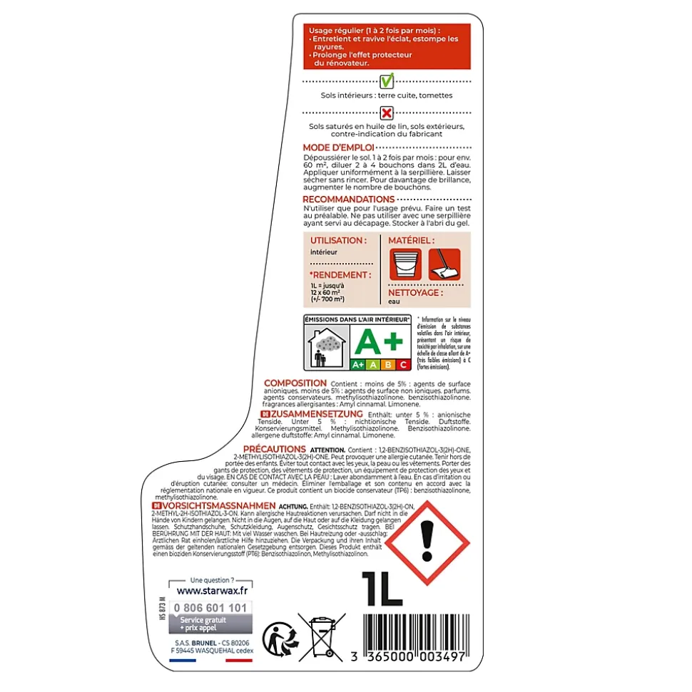 Lait de brillance 2 en 1 tomettes et terres cuites Starwax 1L