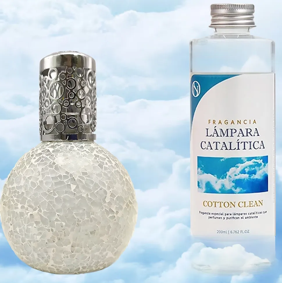 ❗ Pack Économique Lampe Catalytique Mosaïque Blanc + Parfum Cotton Clean 500 ml ❗Une lampe catalytique parfume et purifie l’air et élimine les odeurs tenaces telles que le tabac, les odeurs de cuisine, l’humidité, les animaux domestiques… Le système de désodorisant à lampe catalytique crée non seulement une ambiance parfumée, mais améliore également la qualité de l’air et embellit la pièce d’un design élégant. En seulement 20 à 30 minutes d’utilisation, la pièce sera parfumée pendant 2 heures. Lorsqu’elle est allumée, la pierre chauffe et génère une catalyse, qui décompose les particules odorantes et purifie l’environnement.⁉️ Comment utiliser une lampe catalytique ?1. REMPLIR LA LAMPE DE PARFUM : Retirez le bouchon décoratif et le capuchon et remplissez la lampe aux 3/4 avec le parfum choisi.2. PLACER LA MÈCHE DANS LA LAMPE : Insérez la mèche éteinte dans la lampe et laissez-la imprégner de parfum pendant environ 15 minutes.3. ALLUMER LA MÈCHE : À l’aide d’un briquet ou d’allumettes, allumez la mèche et laissez la flamme allumée pendant 2 minutes, jusqu’à ce qu’elle se réduise.4. ÉTEINDRE LE BRÛLEUR EN SOUFFLANT : Une fois la flamme réduite, soufflez pour l’éteindre complètement et remettez le capuchon décoratif.5. FIXER LA TÊTE DÉCORATIVE : Une fois la flamme éteinte, placez la tête décorative (avec les trous) sur la lampe à catalyse pour diffuser le parfum. Il est recommandé de l’utiliser pendant 20 à 30 minutes.6. ÉTEINDRE LA LAMPE CATALYTIQUE : Pour éteindre complètement la lampe catalytique, retirez le capuchon décoratif et remettez le capuchon métallique fermé, ce qui arrête la combustion.