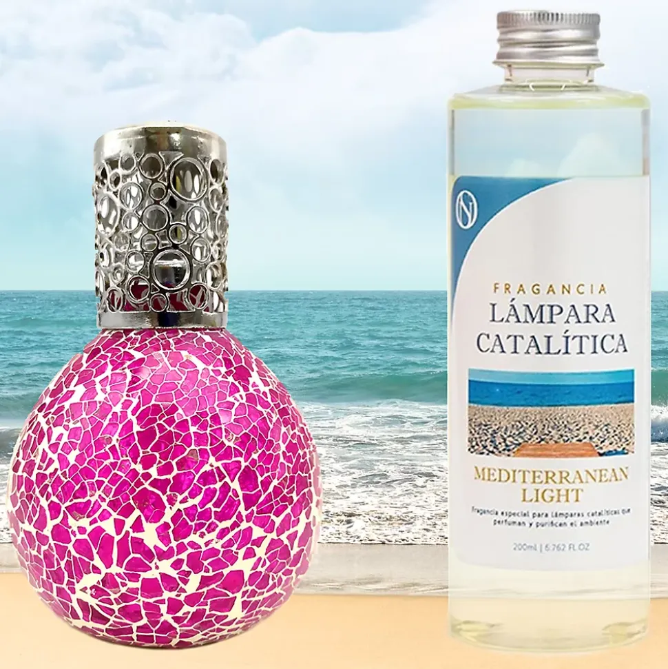❗ Pack Économique Lampe Catalytique Mosaïque Fuchsia + Parfum Mediterranean Light 500 ml ❗Une lampe catalytique parfume et purifie l’air et élimine les odeurs tenaces telles que le tabac, les odeurs de cuisine, l’humidité, les animaux domestiques… Le système de désodorisant à lampe catalytique crée non seulement une ambiance parfumée, mais améliore également la qualité de l’air et embellit la pièce d’un design élégant. En seulement 20 à 30 minutes d’utilisation, la pièce sera parfumée pendant 2 heures. Lorsqu’elle est allumée, la pierre chauffe et génère une catalyse, qui décompose les particules odorantes et purifie l’environnement.⁉️ Comment utiliser une lampe catalytique ?1. REMPLIR LA LAMPE DE PARFUM : Retirez le bouchon décoratif et le capuchon et remplissez la lampe aux 3/4 avec le parfum choisi.2. PLACER LA MÈCHE DANS LA LAMPE : Insérez la mèche éteinte dans la lampe et laissez-la imprégner de parfum pendant environ 15 minutes.3. ALLUMER LA MÈCHE : À l’aide d’un briquet ou d’allumettes, allumez la mèche et laissez la flamme allumée pendant 2 minutes, jusqu’à ce qu’elle se réduise.4. ÉTEINDRE LE BRÛLEUR EN SOUFFLANT : Une fois la flamme réduite, soufflez pour l’éteindre complètement et remettez le capuchon décoratif.5. FIXER LA TÊTE DÉCORATIVE : Une fois la flamme éteinte, placez la tête décorative (avec les trous) sur la lampe à catalyse pour diffuser le parfum. Il est recommandé de l’utiliser pendant 20 à 30 minutes.6. ÉTEINDRE LA LAMPE CATALYTIQUE : Pour éteindre complètement la lampe catalytique, retirez le capuchon décoratif et remettez le capuchon métallique fermé, ce qui arrête la combustion.