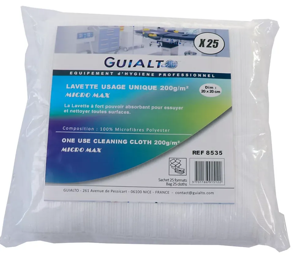 Lavette Uu Micro Max 20X20Cm (Carton 500 U) Lavette microfibre à usage unique 20cmx20cm, double face (une face grattante), nettoie sans rayer||||Lavette multi-usages nettoyante et dégraissante, efficace sur toutes les surfaces||en un seul passage.||Capacité d’absorption 800%||Bonne résistance. Faci