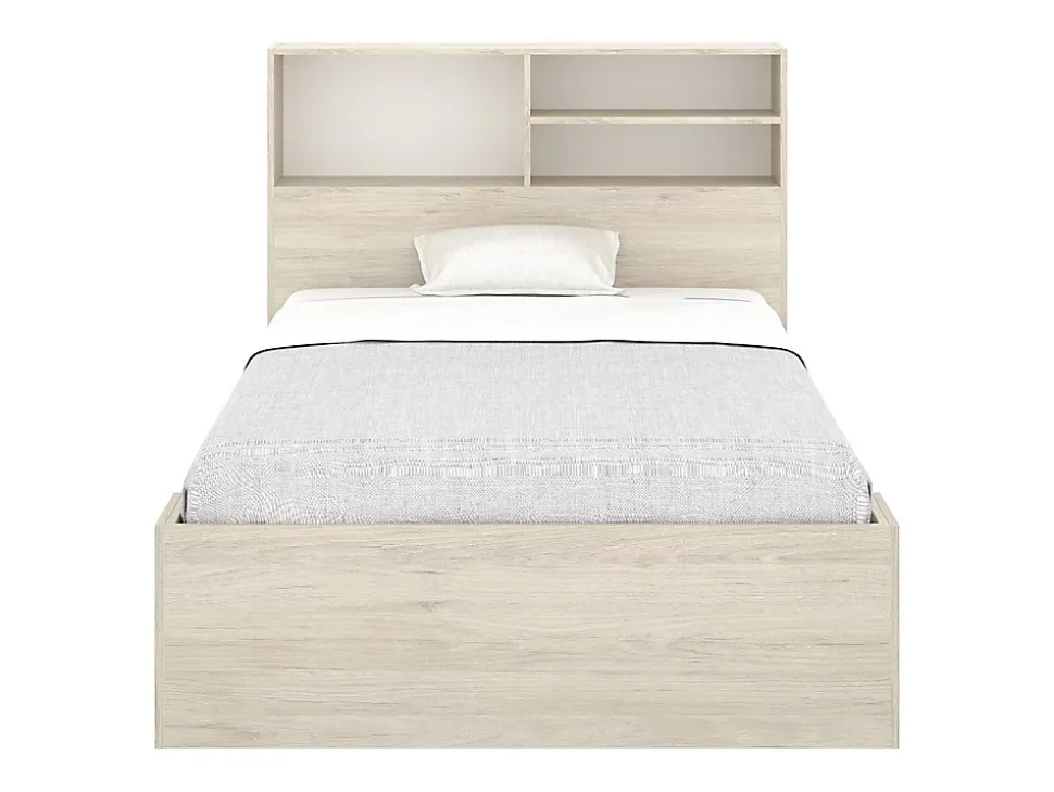- Lit 120 x 190 cm avec rangements – Structure : Panneaux de particules – Coloris : Naturel et blanc – Dims : L217,6 x P127,4 x H110 cm – Style : Intemporel – Confort et design Intemporel avec le lit VARDIEL !