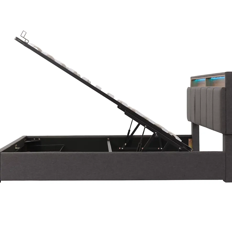Design & styleCe lit 140×190 cm tapissé en tissu effet lin gris combine lignes contemporaines et confort visuel adapté aux chambres d’adolescents et aux jeunes adultes. La tête de lit rembourrée sert d’appui confortable pour la lecture ou le visionnage et intègre un éclairage LED facile à utiliser via télécommande, permettant d’ajuster l’intensité et la couleur pour créer différentes ambiances selon l’activité ou l’heure.Fonctionnalité & rangement Espace de rangement généreux sous le sommier, idéal pour organiser couettes, oreillers et affaires saisonnières et optimiser l’espace de la chambre. Sommier à lattes en bois inclus, conçu pour assurer une bonne circulation de l’air entre la matelas et le sommier afin de limiter l’humidité et améliorer le confort de couchage. Matelas non fourni. Conception pensée pour un usage quotidien avec une capacité de charge maximale recommandée de 300 kg.Matériaux & entretienLa structure associe acier pour la robustesse et panneaux MDF pour les éléments de cadre, recouverts d’un tissu effet lin respirant. Le tissu favorise l’aération et contribue à un climat de sommeil plus frais en saison chaude. Pour l’entretien, dépoussiérez régulièrement et procédez à un nettoyage ponctuel à l’aide d’un chiffon doux ; évitez les produits agressifs ou blanchissants pour préserver les finitions.Installation & emballageProduit livré démonté en 2 colis et nécessitant un montage. Deux personnes sont recommandées pour l’assemblage afin d’assurer une installation sûre et stable. Les pièces et la notice sont fournies dans l’emballage ; les colis peuvent arriver séparément, merci de patienter en cas de réception différée.Informations complémentairesDimensions de la surface de couchage : 140×190 cm. Pieds de 8 cm pour un bon maintien et une circulation d’air sous le lit ; éléments de cadre d’environ 5 cm d’épaisseur pour une assise stable. Modèle livré sans matelas, avec sommier à lattes inclus. Couleur dominante : gris.