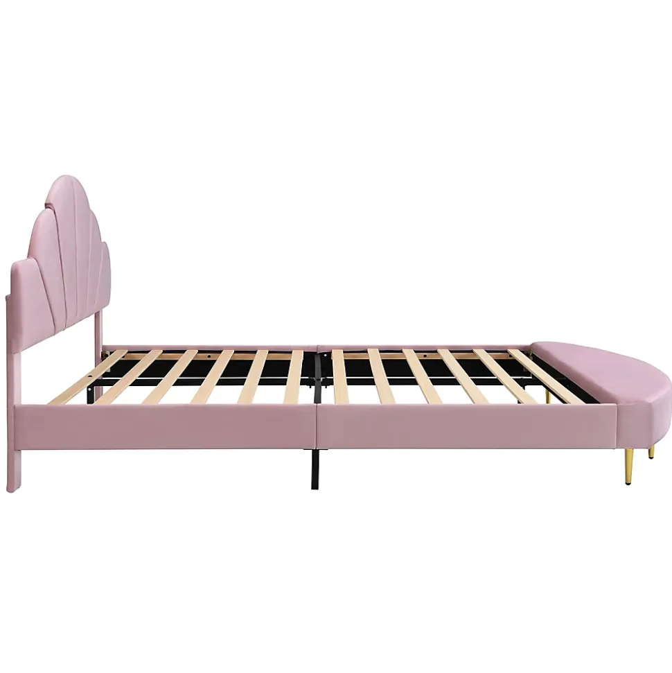 Design & styleCe canapé au revêtement velours rose mise sur une silhouette raffinée et chaleureuse : la tête de lit moelleuse et la banquette assortie créent un ensemble coordonné et accueillant, idéal pour aménager une chambre ou un espace détente au style contemporain, scandinave ou sophistiqué.Confort & couchageDimension du couchage : 140×200 cm (matelas non fourni, épaisseur recommandée ≤21,5 cm).Bords anti-collision en mousse douce pour limiter les chocs et augmenter le confort d’utilisation au quotidien.Capacité d’utilisation adaptée à un usage régulier : structure pensée pour offrir soutien et stabilité (charge utile indiquée ~136 kg).Matériaux & entretienRevêtement en velours agréable au toucher, structure en contreplaqué avec éléments métalliques et rembourrage mousse. Surfaces faciles à entretenir : nettoyage ponctuel à l’aide d’un chiffon doux et brossage délicat pour préserver la texture du velours.Installation & emballageMontage requis, notice et toutes les pièces fournies ; deux personnes recommandées pour l’assemblage. Produit livré en 2 colis (poids total environ 39 kg), les colis peuvent arriver séparément. Origine Chine, composant bois certifié.Dimensions & informations pratiquesDimensions totales annoncées : 240,5×149,5×109,5 cm (ensemble incluant la banquette). Matériaux principaux : velours, contreplaqué, métal et mousse. Matelas non inclus.