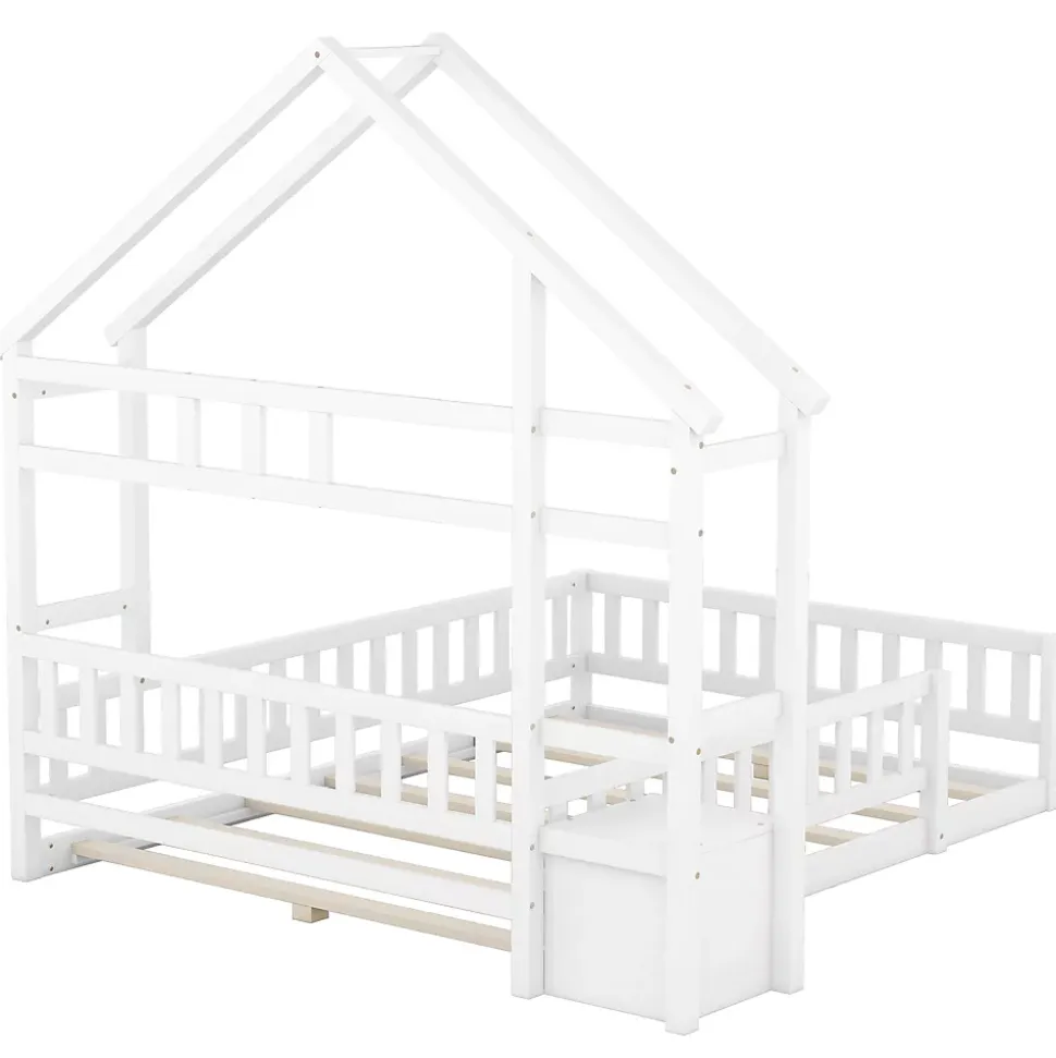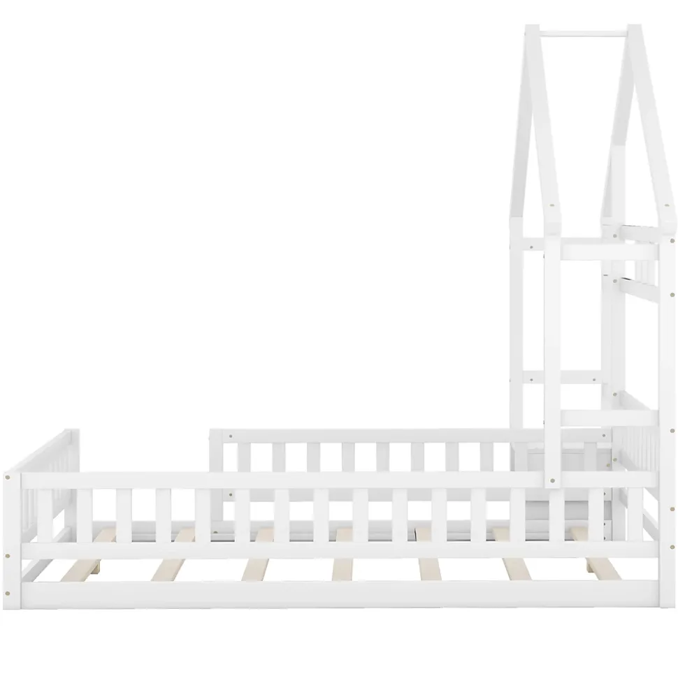 Design & styleCe lit en forme de maison apporte une atmosphère chaleureuse et ludique à la chambre d’un enfant. La finition blanche et les lignes épurées s’intègrent facilement dans un décor contemporain ou scandinave tout en offrant un point focal décoratif et sécurisant.Fonctionnalité & rangementTable de chevet intégrée pour garder livres et objets à portée de main.Barrière latérale de 31 cm empêchant les chutes et favorisant un sommeil serein.Sommier composé de 7 lattes adapté au couchage 140×200 cm (matelas conseillé 15–20 cm).Matériaux & entretienStructure en pin massif associée à éléments en MDF, finition peinte avec vernis. Bois robuste et durable conçu pour un usage quotidien ; entretien facile avec un chiffon doux et un produit adapté au bois peint.Dimensions & sécuritéDimensions totales : 203x203x190 cm ; intérieur couchage 140×200 cm. Capacité de charge : 250 kg. Conception stable et barrières sécurisées pour accompagner la croissance de l’enfant en toute sérénité.Installation & emballageProduit livré en 2 colis ; les colis peuvent arriver séparément. Montage requis, deux personnes recommandées pour un assemblage sûr. Tous les éléments et la notice sont fournis pour faciliter l’installation.