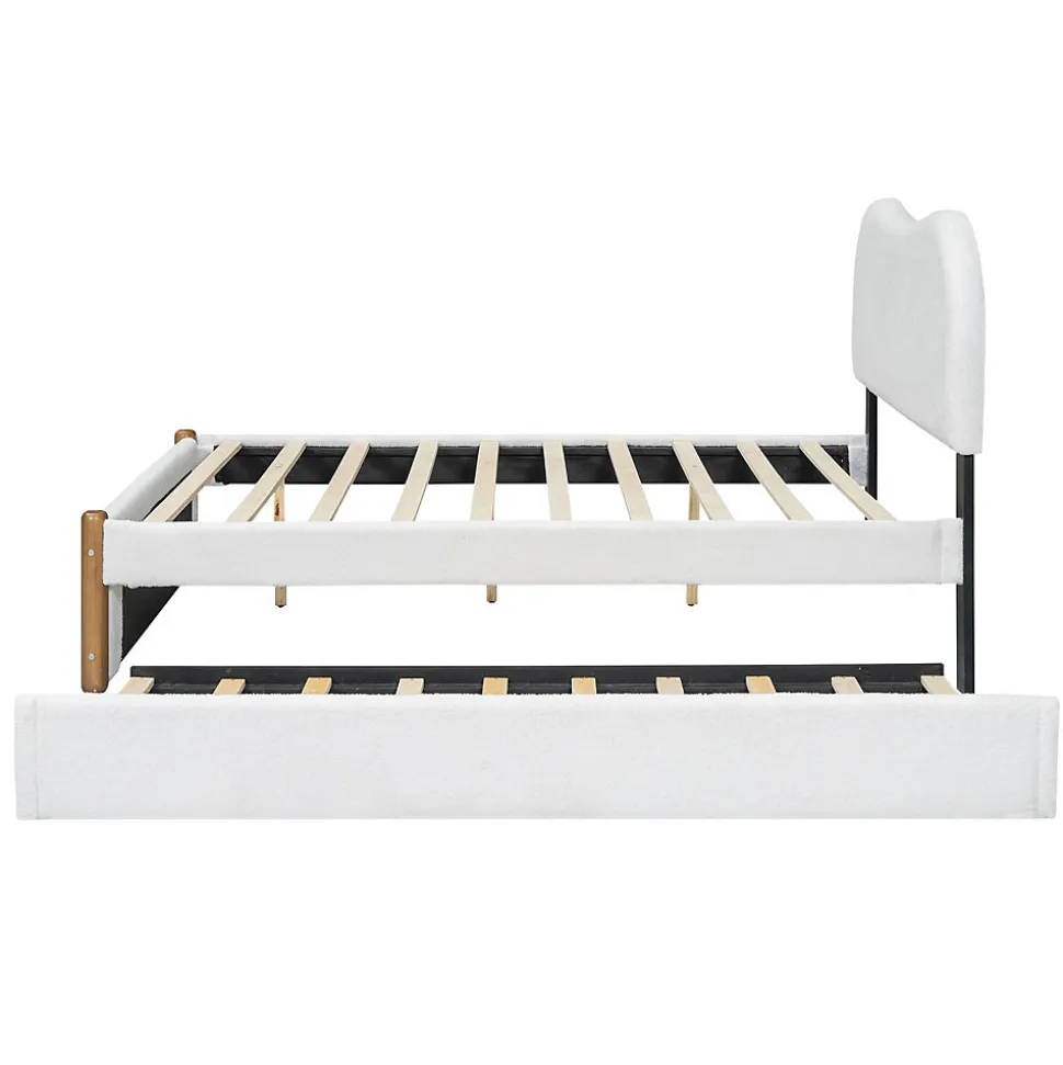 Design & styleCe lit tapissé associe un style minimaliste et des lignes épurées pour s’intégrer facilement aux intérieurs contemporains. La tête de lit en velours blanc, rehaussée d’un décor bois en bout de lit, apporte une note chaleureuse et discrète tout en conservant une esthétique sobre et accueillante.Fonctionnalité & rangement Lit principal adapté à un matelas 140×200 cm pour un couchage quotidien confortable. Lit gigogne rétractable (intérieur 91×191 cm) positionnable à gauche ou à droite selon les besoins, pratique pour recevoir un enfant ou un invité. Structure étudiée pour optimiser l’espace de la chambre sans surcharger le volume visuel.Matériaux & entretienStructure en panneaux MDF et revêtement en velours (plush) offrant un toucher doux et une bonne tenue. Hauteur totale 115 cm, cadre équipé de 10 lattes. Capacités : 200 kg pour le lit principal et 80 kg pour le gigogne. Pour l’entretien, dépoussiérer régulièrement et nettoyer avec un chiffon doux humide si nécessaire.Installation & emballageMontage requis, notice et pièces complètes fournies, deux personnes recommandées pour l’assemblage. Livré en 2 colis depuis l’usine (Vietnam) ; les colis peuvent arriver à des dates différentes. Dimensions utiles et recommandations : intérieur lit 140×200 cm, gigogne 91×191 cm, recommandé pour matelas de 15-20 cm d’épaisseur.