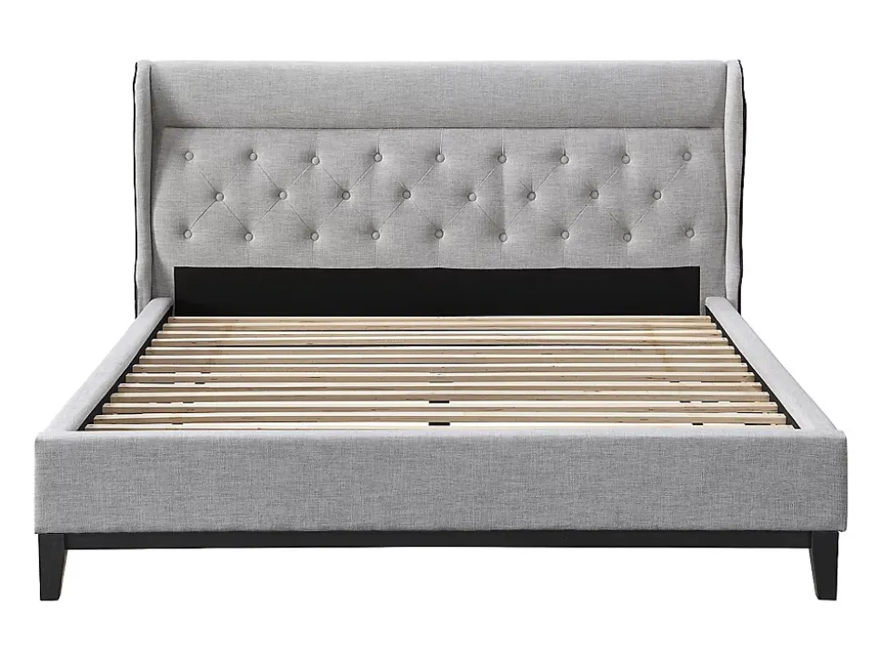 - Lit 160 x 200 cm – Structure : Tissu – Coloris : Gris – Dimensions : L179 x P218,5 x H107,5 cm – Style : Vintage + Matelas – Plongez dans le charme du passé avec le lit MARSEDENIO !