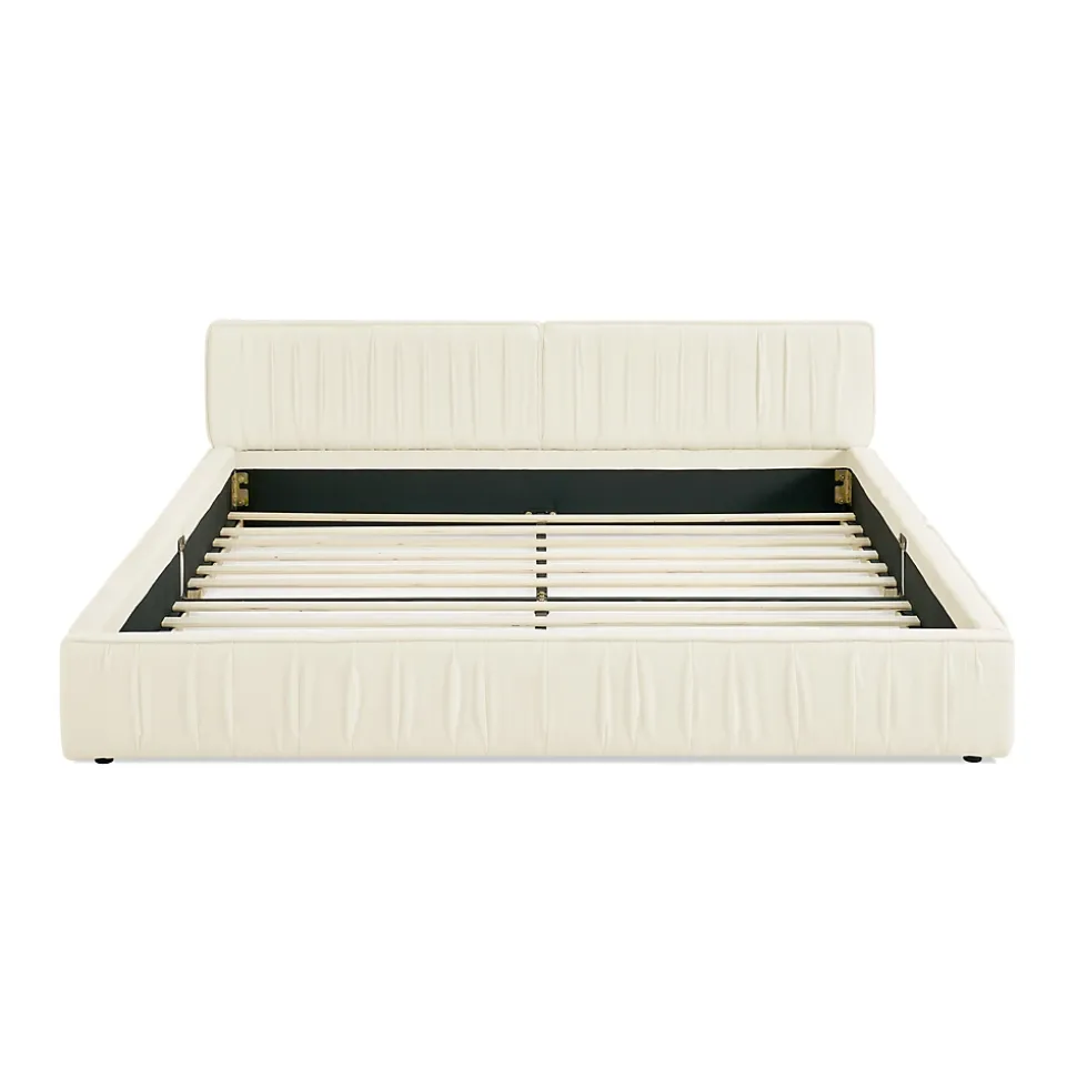 - Design élégant avec tête de lit plissée en tissu chenille beige, offrant une texture chaleureuse et un relief visuel qui s’intègre facilement aux ambiances scandinaves, modernes ou minimalistes de la chambre.