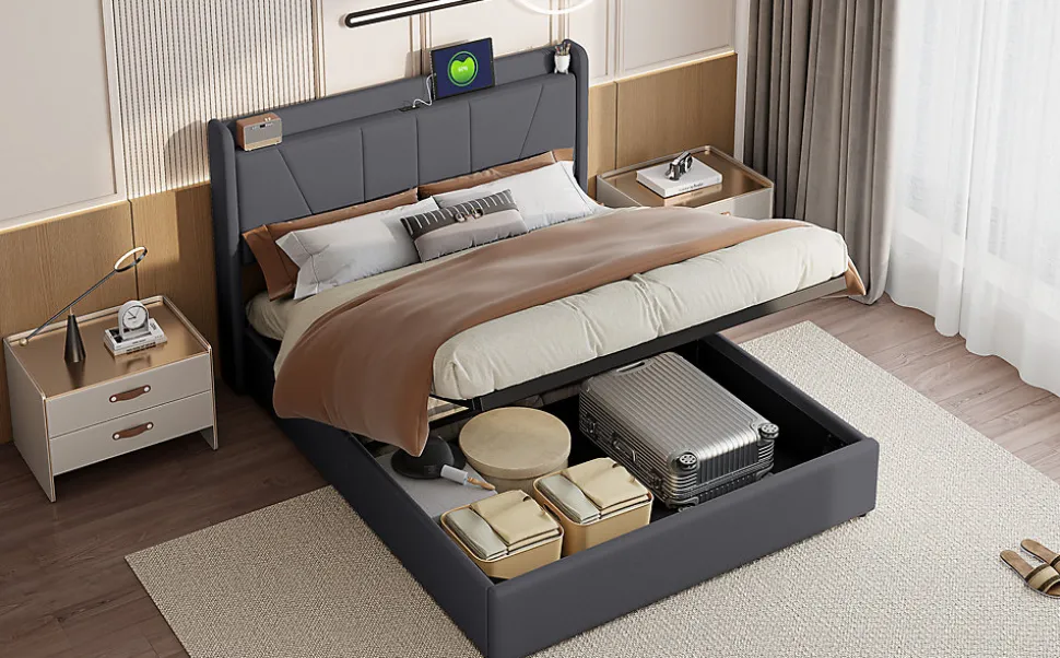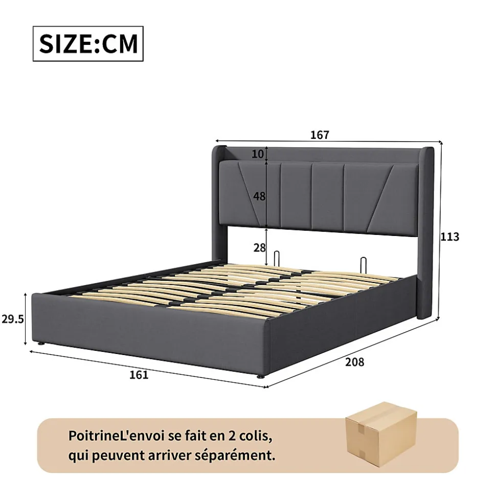 LOOK MODERNE, CONFORT CLASSIQUE : La tête de lit moelleuse de Maya, avec ses panneaux asymétriques élégants, apporte une touche de fraîcheur et de modernité, créant un coin luxueux pour la relaxation. Son revêtement gris doux, orné de coutures subtilement éclectiques, promet d’élever l’esthétique de votre chambre à coucher à de nouveaux sommets.CONSTRUCTION DURABLE : Ultra-durable et conçu pour durer, ce cadre de lit prolonge la durée de vie de votre matelas en latex, en mousse à mémoire de forme ou à ressorts. Son magnifique cadre est renforcé par de l’acier solide pour un sommeil silencieux nuit après nuit.EMBALLAGE ET EXPÉDITION EFFICACES : Tout ce dont vous avez besoin pour assembler ce lit plateforme est livré à votre porte dans une boîte compacte etASSEMBLAGE FACILE : Toutes les pièces, tous les outils et toutes les instructions sont inclus pour un montage facile en moins d’une heure.