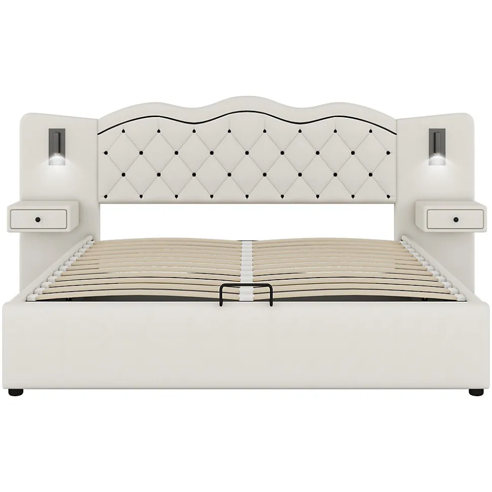 - Montage requis, deux personnes recommandées. Livré en 3 colis. Prises USB intégrées de chaque côté; entretien facile avec un chiffon doux pour préserver l’aspect du tissu.