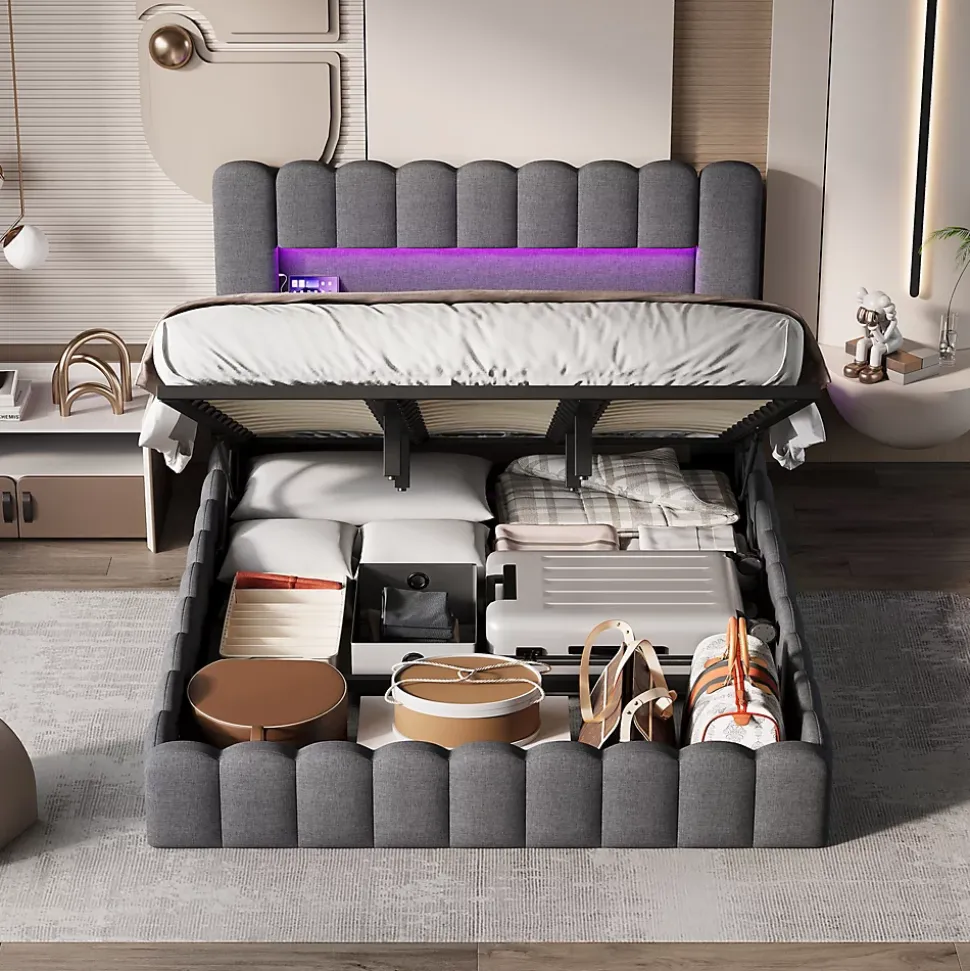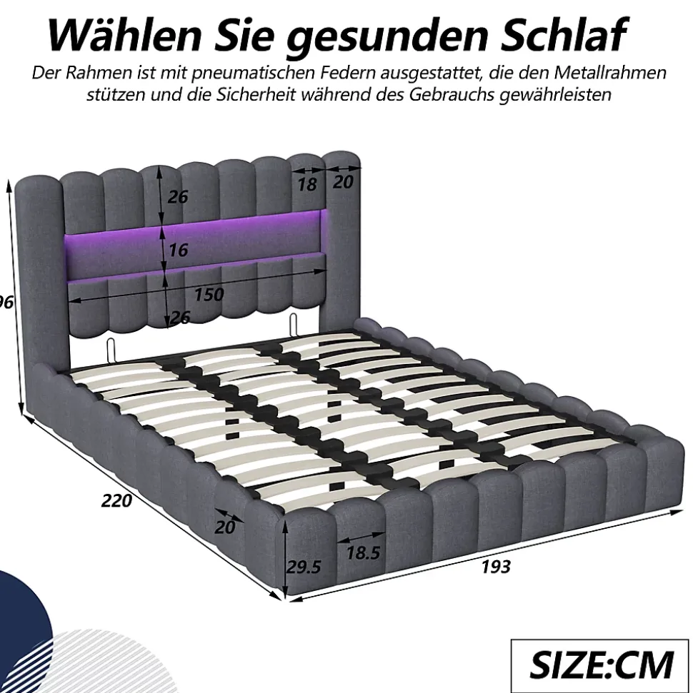Description du produitLe tissu en lin doux réduit efficacement le risque de blessures causées par des coins et des bords tranchants pour vous ou votre famille. Quel que soit le style de votre chambre, ce lit s’y intégrera parfaitement, créant une ambiance cosy.Remarques : En raison de mesures manuelles, une erreur de 2 à 3 cm peut se produire. Ce produit sera livré en 2 colis. Ils peuvent ne pas arriver en même temps. Veuillez patienter. Si le client a des questions pendant l’installation, veuillez nous contacter dès que possible.DescriptionMatériau : Bois massif + Lin + MétalCouleur : GrisNombre de colis : 2Assemblage requis : ouiDimensions du produit : 220 x 193 x 96 cmDimensions du lit : 180 x 200 cm (sans matelas)Poids du produit : 42 kgCharge maximale du lit : 300 kg