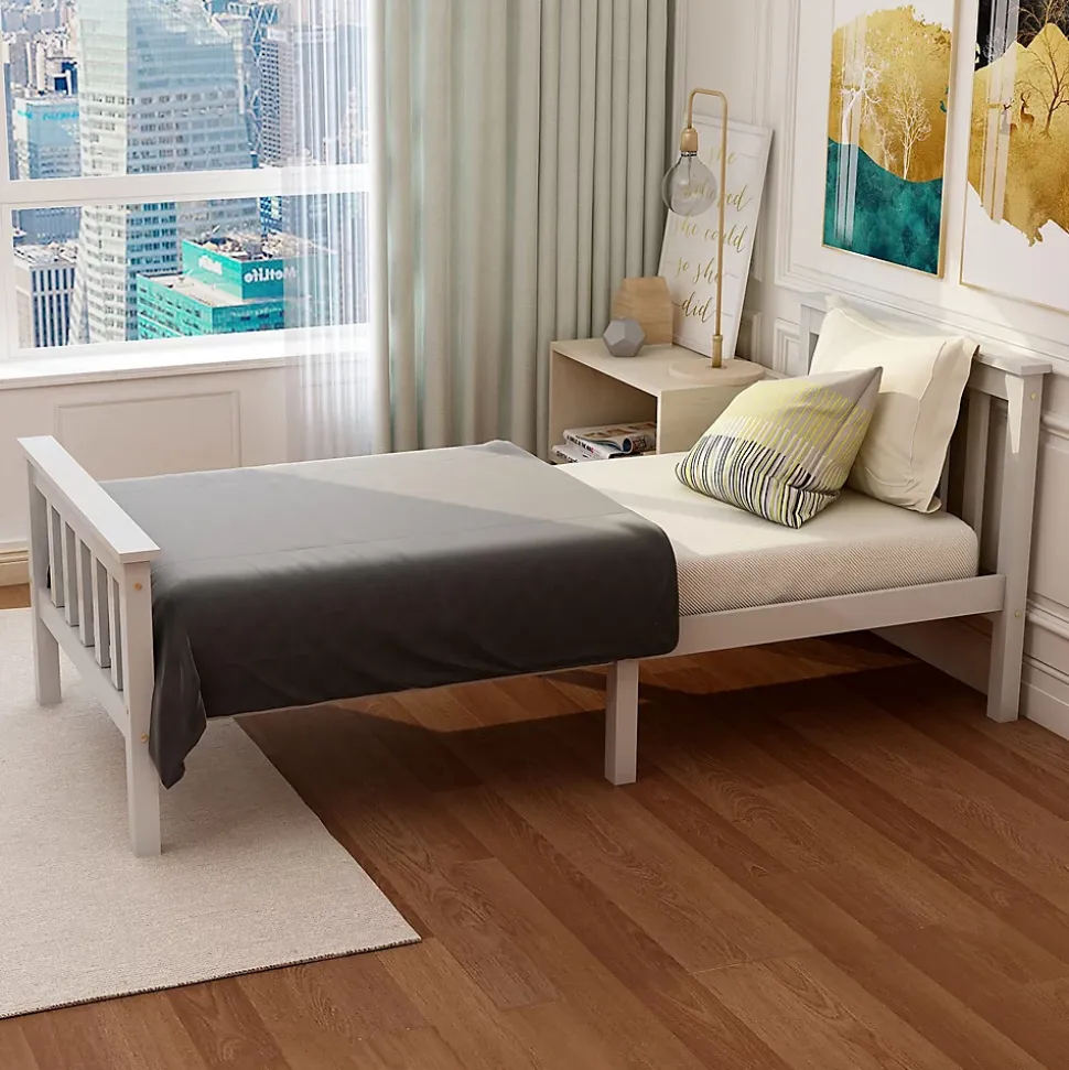 - Montage requis, deux personnes recommandées. Lattes renforcées pour une stabilité quotidienne; surfaces poncées faciles à entretenir avec un chiffon doux. Livré en 1 colis, matelas non fourni, pas de boxspring nécessaire.