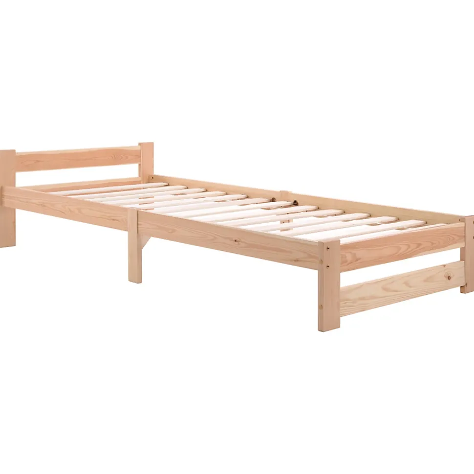 1. Esthétique remarquable. Tous les éléments ont été parfaitement coordonnés. Les niches dans le sommier assurent une ventilation optimale, tandis que le bois peut être traité et personnalisé selon vos envies. Appréciez la magnificence de ce lit en bois massif, fabriqué à partir de bois naturel de première qualité. 2. Adoptez la tendance chez vous. Les lits en bois sont actuellement très en vogue. Ce lit en bois massif, à la fois simple et robuste, est doté d’une structure stable en pin, avec des pieds et un cadre solides. 3. Simplicité et sérénité. Ce lit offre tout le confort et le soutien nécessaires, sans les fioritures inutiles des lits traditionnels. Ses lignes simples et élégantes créent une atmosphère paisible et s’harmonisent avec de nombreux styles et décorations intérieures. Vous profiterez ainsi de nuits paisibles, et c’est bien là l’essentiel ! 4. Adapté à toutes les pièces. Ce lit de 90 x 200 cm, pratiquement indestructible, est idéal comme lit simple, lit d’appoint ou lit compact grâce à sa hauteur confortable de 49 cm. Parfait pour votre maison, ainsi que pour les hôtels et les chambres d’hôtes. Le lit en bois ne grince pas sous le poids, testé. 5. Dimensions adaptées. Grâce à ses dimensions, ce lit convient également aux petites chambres, et aucun sommier supplémentaire n’est nécessaire, car le matelas repose directement sur le cadre. Remarque : Ce lit est vendu sans matelas.