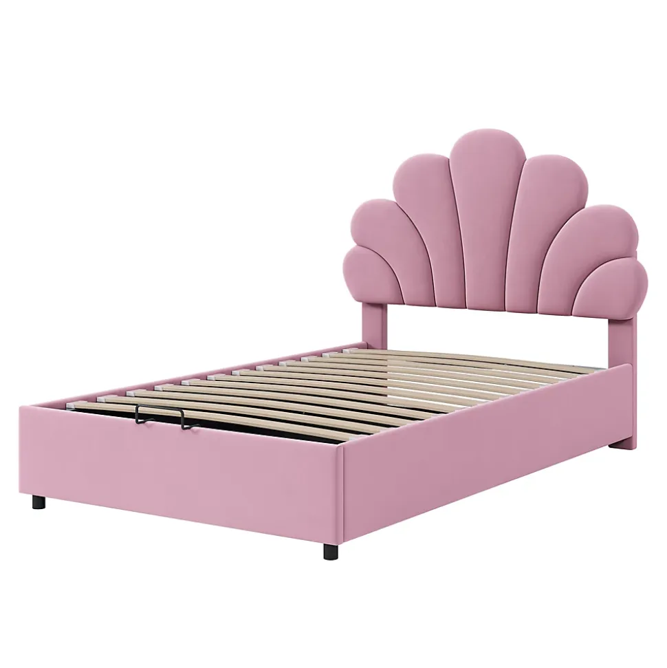 Design & styleCe lit tapissé associe un revêtement en velours doux à une tête de lit d’inspiration florale, offrant une esthétique tendre et raffinée adaptée aux chambres contemporaines. La teinte rose apporte une atmosphère chaleureuse sans surcharge visuelle, tandis que les lignes épurées s’intègrent facilement à différents décors.Fonctionnalité & rangement Coffre de rangement profond de 28 cm, accessible par un mécanisme hydraulique double pour un relevage aisé et sécurisé. Sommier à lattes (12 lames) offrant une bonne ventilation du couchage et une assise stable pour la literie. Capacité de charge annoncée jusqu’à 200 kg, adaptée pour un usage quotidien et un rangement optimisé des draps, vêtements ou jouets.Matériaux & entretienCadre en panneaux et MDF, renfort métallique en croix pour une meilleure tenue structurelle. Tissu : velours agréable au toucher et compatible avec un entretien courant à l’aide d’un chiffon doux ou d’un aspirateur type brosse. Éviter les produits abrasifs et les nettoyages à sec intensifs.Dimensions & recommandationsDimensions totales 203 x 94 x 115 cm (L x l x H). Convient pour matelas 90 x 200 cm (mousse ou ressorts) non fourni ; épaisseur recommandée 20–26 cm. Poids colis et produit : poids total du produit environ 41 kg, colis expédiés en 2 paquets. Nombre de lattes : 12.Installation & emballageMontage requis, deux personnes recommandées. Estimation du temps de montage : environ 2 heures. Outils nécessaires fournis (tournevis); il est conseillé d’éviter l’usage d’outils électriques pour préserver les pièces. Produit livré en plusieurs colis pouvant arriver séparément.