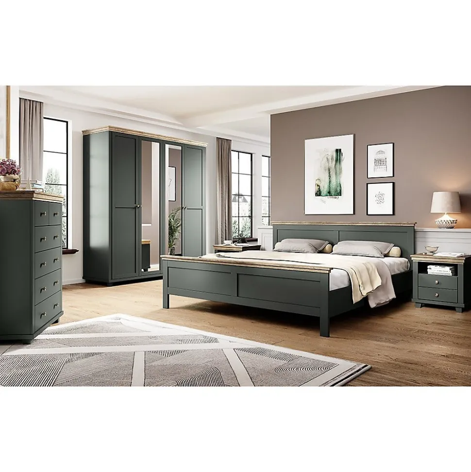 Lit adulte 180×200. Couleur vert kaki effet bois et finitions aspect chêne collection ASSIACe lit 2 places de la collection ASSIA fera de votre chambre un véritable cocon, vous permettant de vous détendre et de vous reposer. N’attendez plus, il apportera immédiatement confort et élégance à votre chambre grâce à son style unique.- COMPOSITION : Lit + tête de lit + sommier.- DIMENSIONS : Lit + tête de lit : largeur 191,5 x Longueur 211 x Hauteur 88cm. (Couchage 180×200 cm)- COLORIS : Vert kaki et finitions aspect chêne- STRUCTURE: Panneaux de particules et MDF de première qualité.- CARACTÉRISTIQUES : Lit 180×200 avec sommier. ****MATELAS NON INCLUS**** Lit disponible dans plusieurs dimensions et différents coloris. Retrouvez également le reste de la collection ASSIA dans notre boutique : Armoire, commodes, ensemble de chambre complet…
