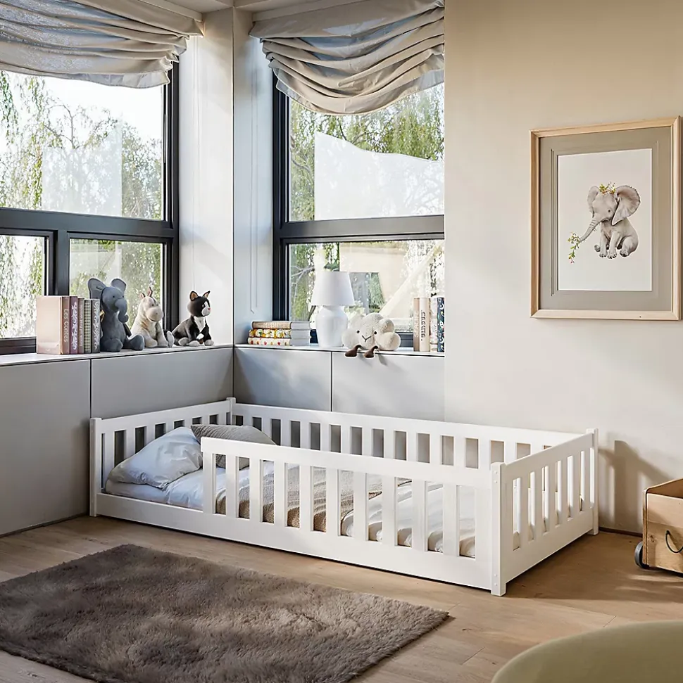 Lit au sol 90×200 sommier inclus Maya Blanc