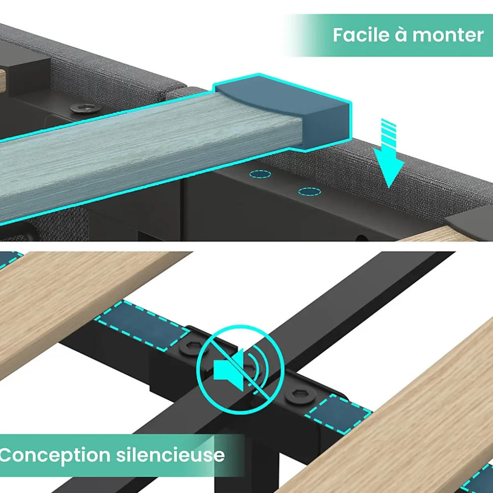 - 【Matériaux Confortables】Le tissu en lin et les coins arrondis assurent un toucher agréable et réduisent le risque de blessures, tandis que les bandes antidérapantes sur les lattes maintiennent le matelas stable, garantissant un sommeil confortable et sécurisé.