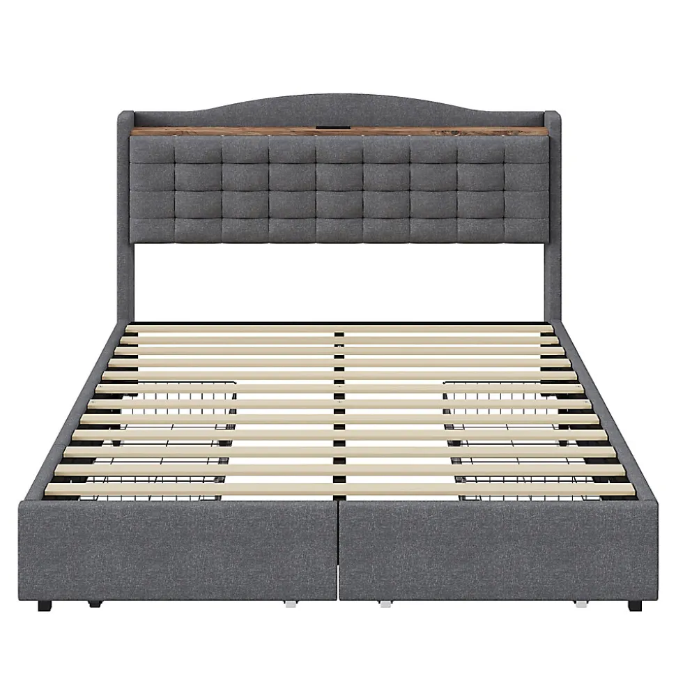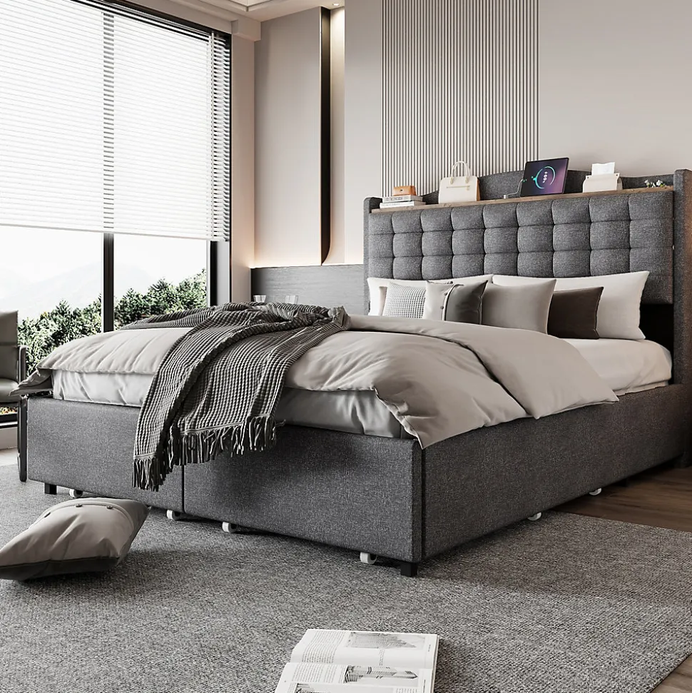 - 【Rangements Spacieux】 Doté de quatre tiroirs généreux sous le lit, cet espace permet de stocker linge de lit et vêtements efficacement, facilitant l’organisation de la chambre et maximisant l’usage de l’espace disponible.