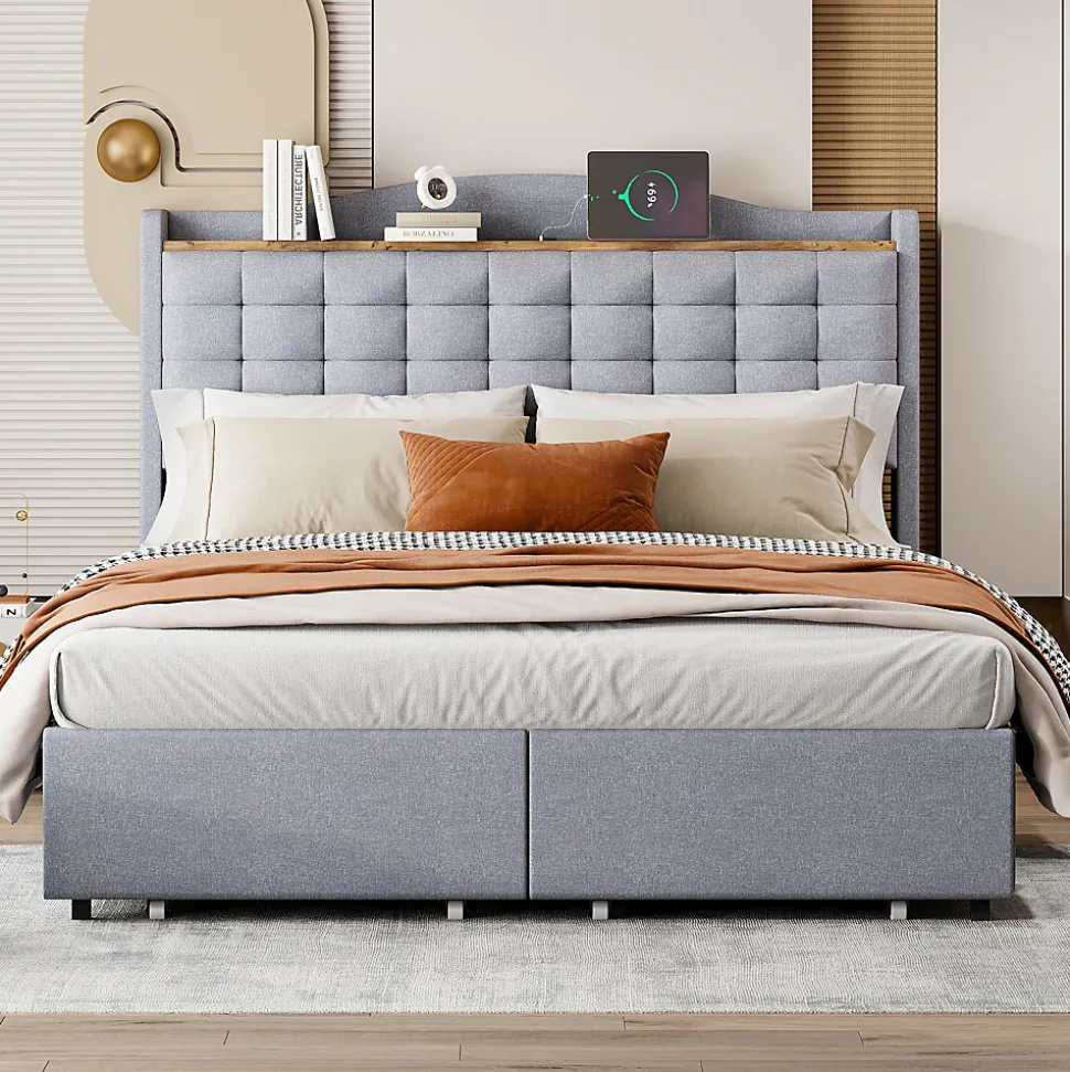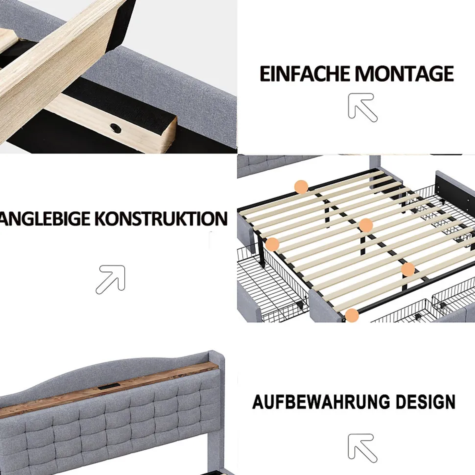 - 【Bett Multifunktional】 Ce lit rembourré intègre un port USB et une tablette au niveau de la tête, permettant de garder vos appareils et accessoires à portée de main pour un confort optimal et une organisation simplifiée.