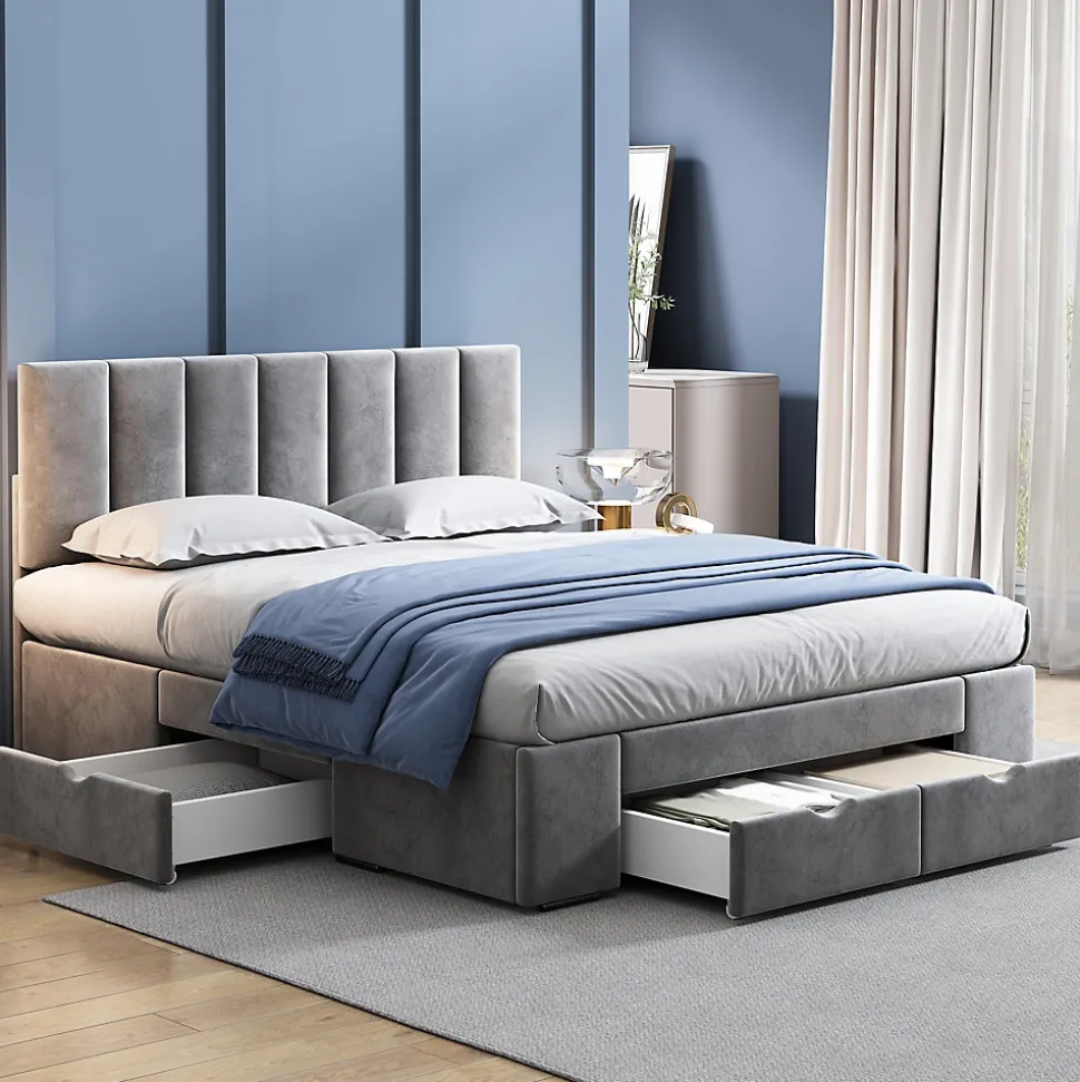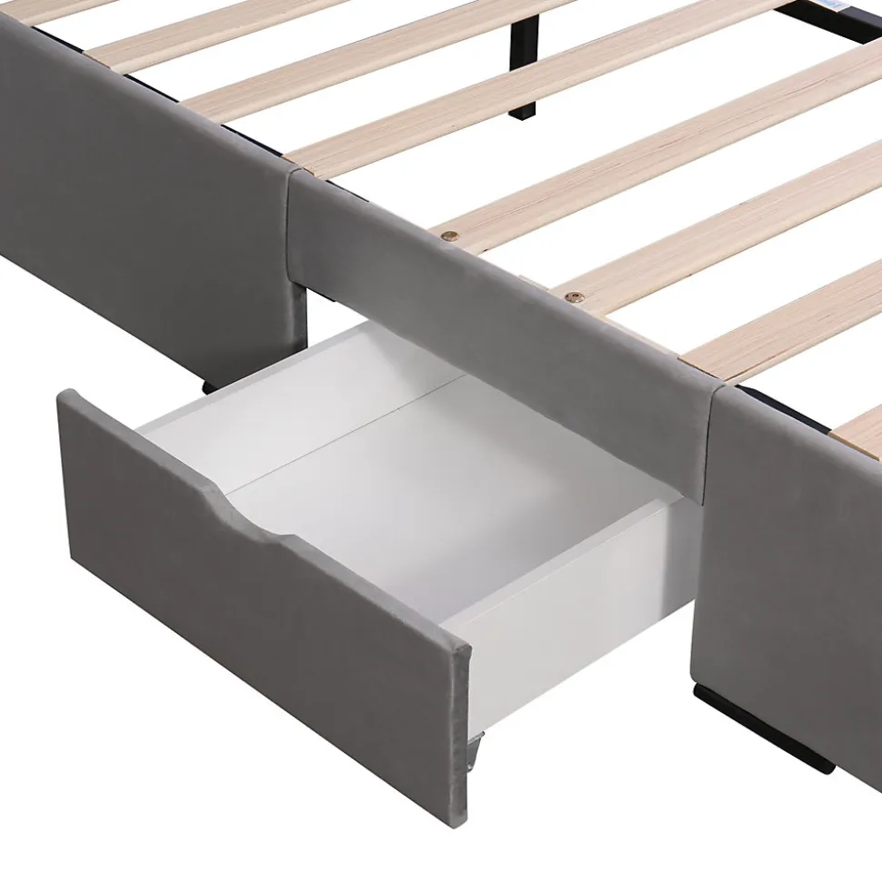 - 【Rangement Pratique sous le Lit】 Le lit est équipé de quatre tiroirs à roulettes pour un rangement facile de vos draps, vêtements et autres objets. Optimisez l’espace de votre chambre tout en gardant tout à portée de main.