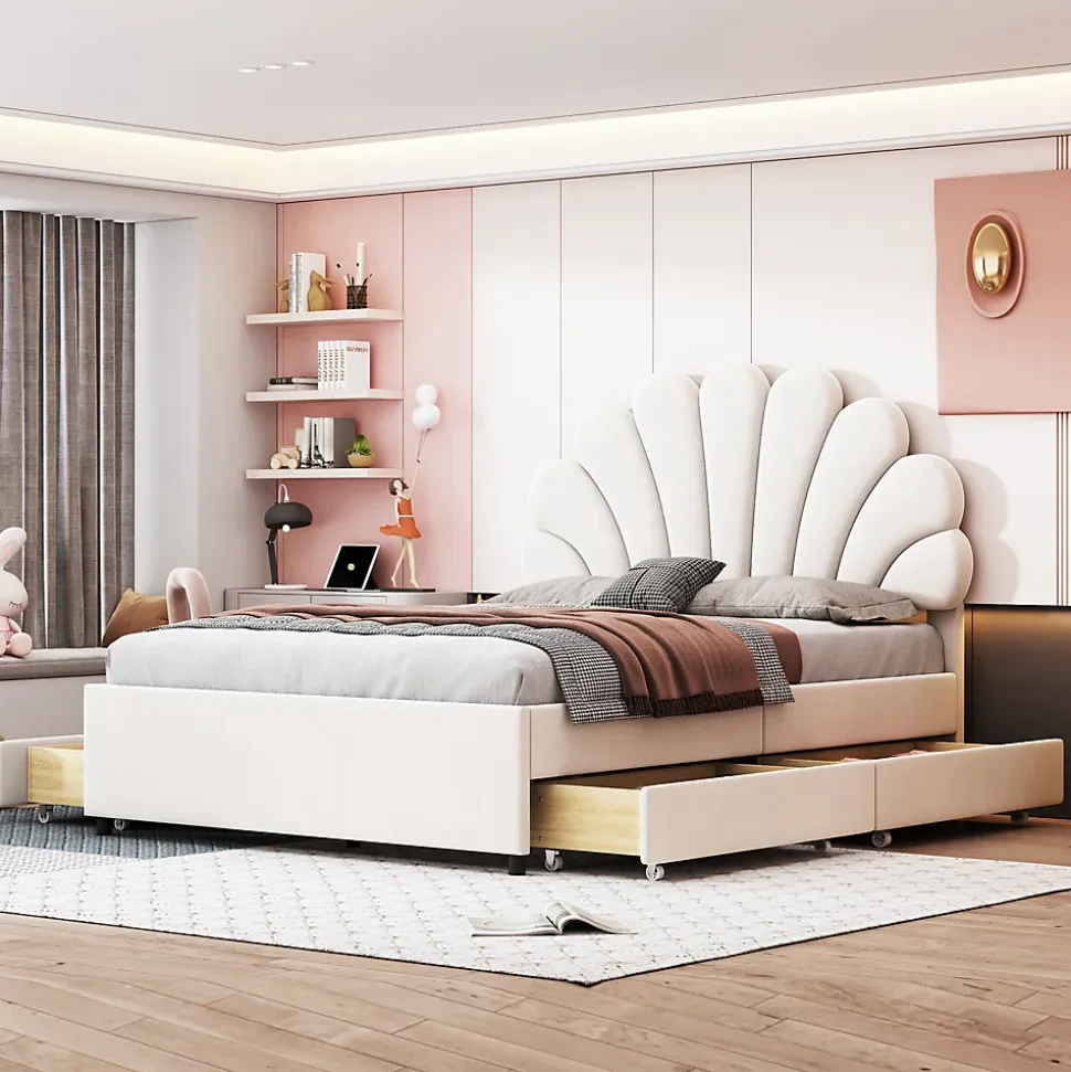 - 【Espace de Rangement Pratique】 Équipé de 4 grandes tiroirs de rangement, ce lit vous permet de garder votre chambre propre et bien organisée. Vous pouvez facilement y ranger des couvertures, des vêtements ou des jouets, maximisant ainsi l’espace disponible dans votre pièce.