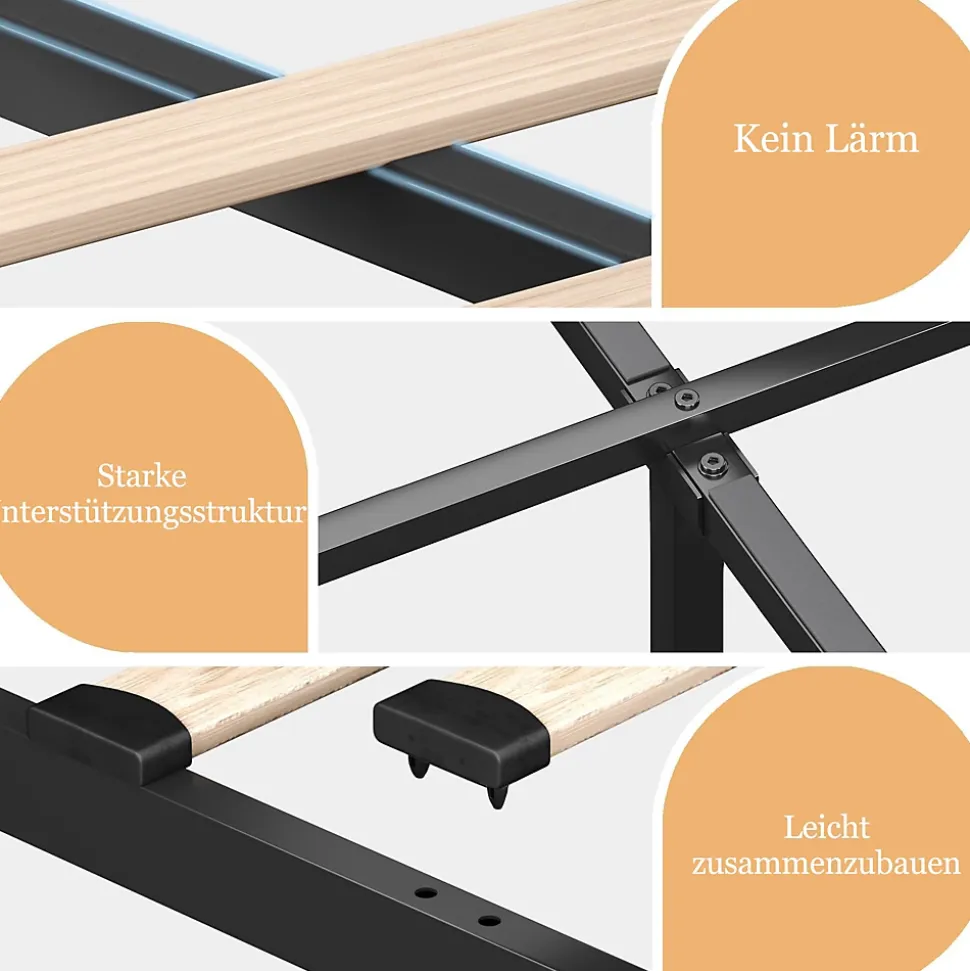 - 【Système de soutien robuste et silencieux】 Structure métallique laquée et lattes en bois massif avec bandes anti-bruit EVA, offrant un soutien stable qui évite les grincements et assure un sommeil paisible chaque nuit.