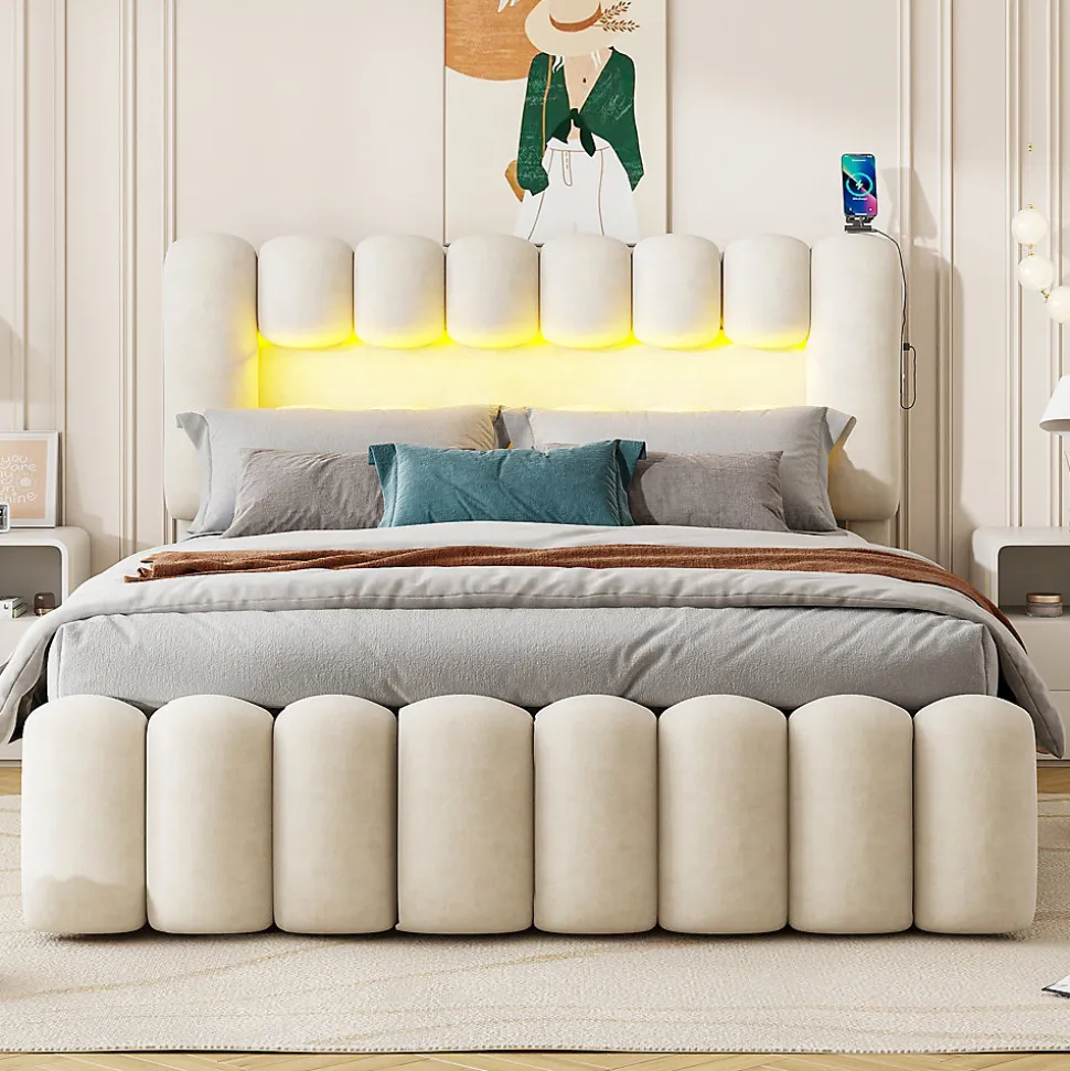 - 【Design Multifonctionnel】 Ce lit est conçu avec des haut-parleurs intégrés, un port USB et une barre lumineuse LED, vous permettant de créer une ambiance relaxante tout en écoutant de la musique ou en rechargeant vos appareils, directement depuis votre lit.