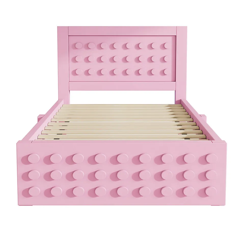 - 【Design Ludique Et Original】 La tête et le pied de lit présentent un motif en blocs créatif avec des panneaux rectangulaires et des détails en points, apportant une touche fantaisie qui ravira les enfants et égayera leur chambre.