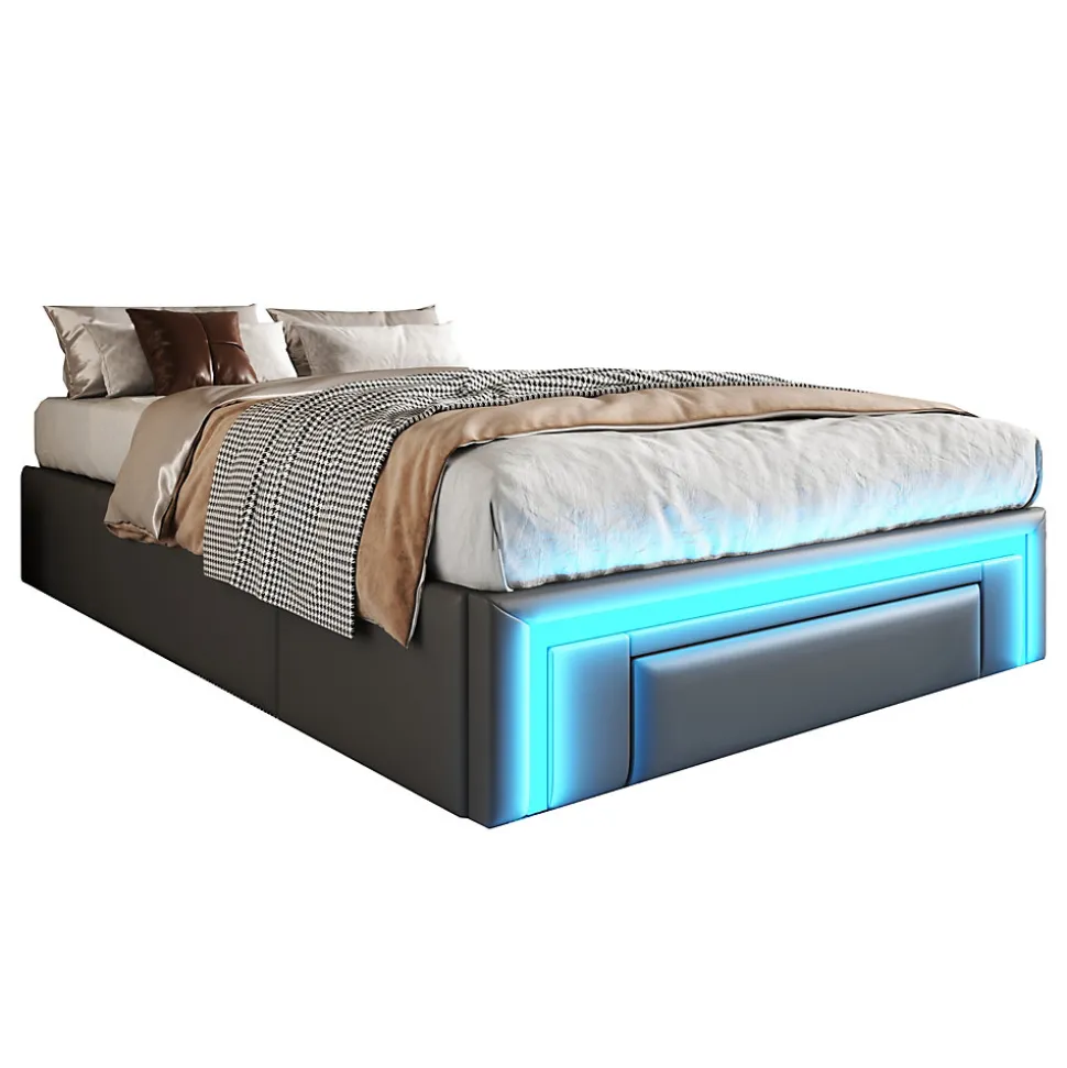 - 【Éclairage LED Ambiant】 La bande lumineuse RGB au pied du lit crée une ambiance agréable grâce à des couleurs changeantes. Vous pouvez ajuster l’éclairage à l’aide de la télécommande pour adapter l’atmosphère à votre humeur.