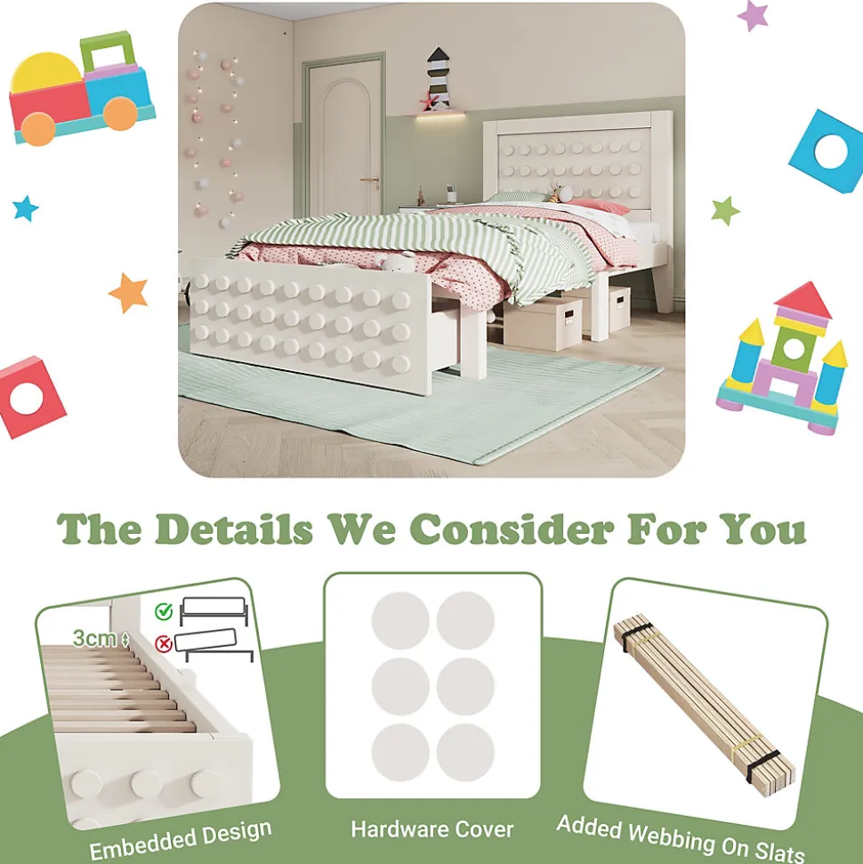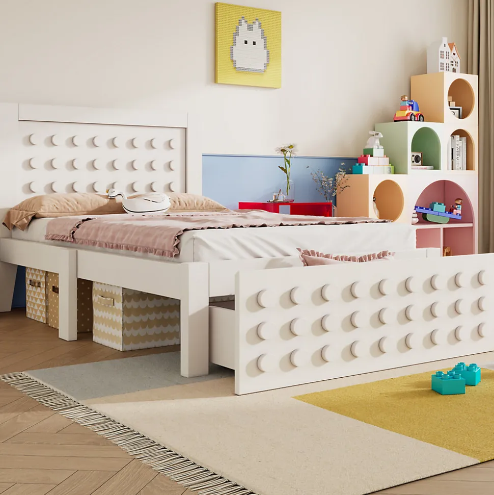 - 【Design Ludique et Original】 La tête et le pied du lit présentent un motif en blocs rectangulaires avec des détails ponctués, offrant un aspect ludique et visuellement captivant qui émerveillera les enfants tout en personnalisant leur chambre.