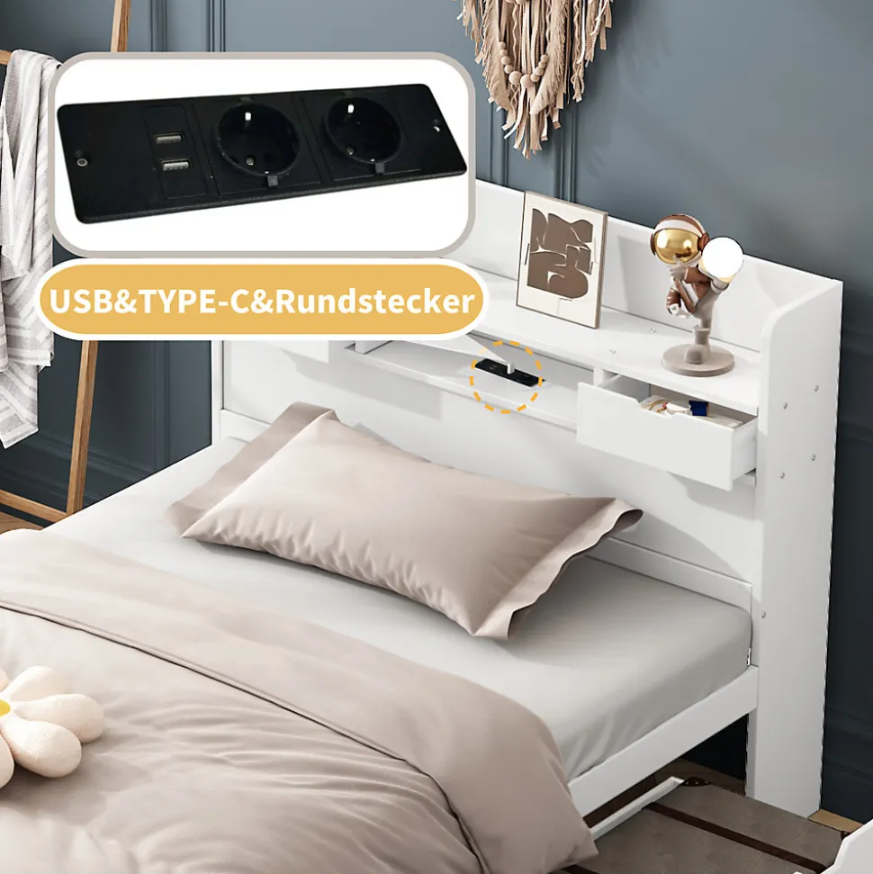 - 【Design multifonctionnel】 Ce lit dispose d’un port USB intégré pour charger facilement les appareils électroniques, et de nombreux espaces de rangement au niveau de la tête, du pied et des côtés pour organiser vêtements, jouets et livres.