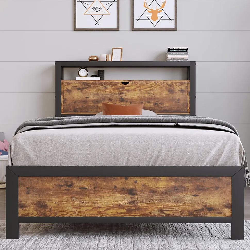 - 【Design Unique et Industriel】 Le mélange du métal rétro et du bois dans la tête et le pied du lit offre une touche industrielle qui complète parfaitement une chambre moderne, créant une atmosphère élégante et accueillante.