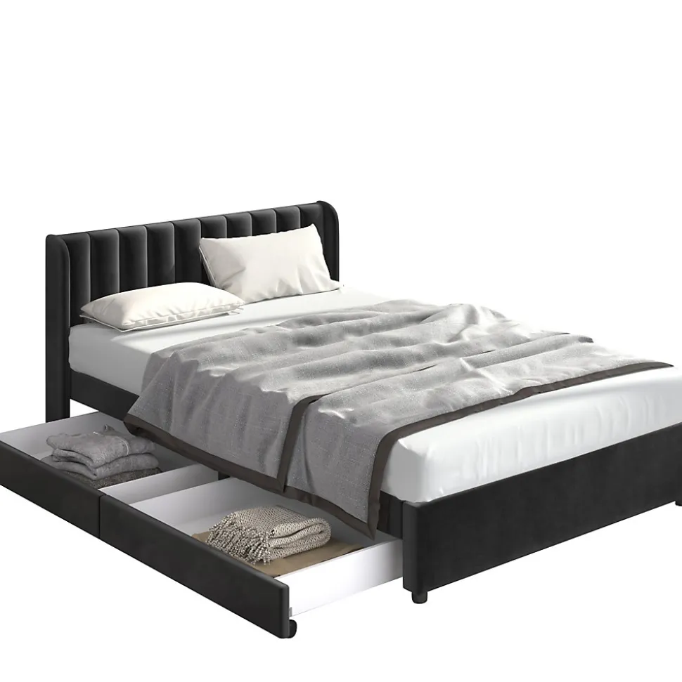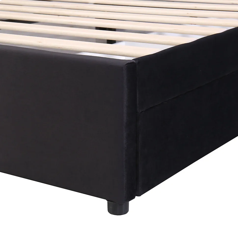 ▶ ▶ Détails ▶────────────────● Dimensions du produit : 207,5 x 166 x 95 cm (L x l x H)● Dimensions du matelas applicable : 160 x 200 cm (matelas non inclus)● Type de matelas : Matelas non inclus● Couleur : Noir● Type de sommier : Sommier inclus● Détails de rangement : 2 tiroirs de rangement● Capacité maximale : 300 kg● Matériaux : Velours + Bois + Métal● Nombre de colis : 2► Remarques ►※ En raison de la mesure manuelle, une différence de 2 à 3 cm peut survenir.※ Des différences de couleur peuvent apparaître entre l’image du produit et le produit réel en raison de l’éclairage. Veuillez vous référer au produit reçu.※ Ce produit est expédié en 2 colis, qui peuvent arriver à des moments différents. Veuillez patienter.※ Si vous avez des questions lors de l’installation, veuillez nous contacter dès que possible.