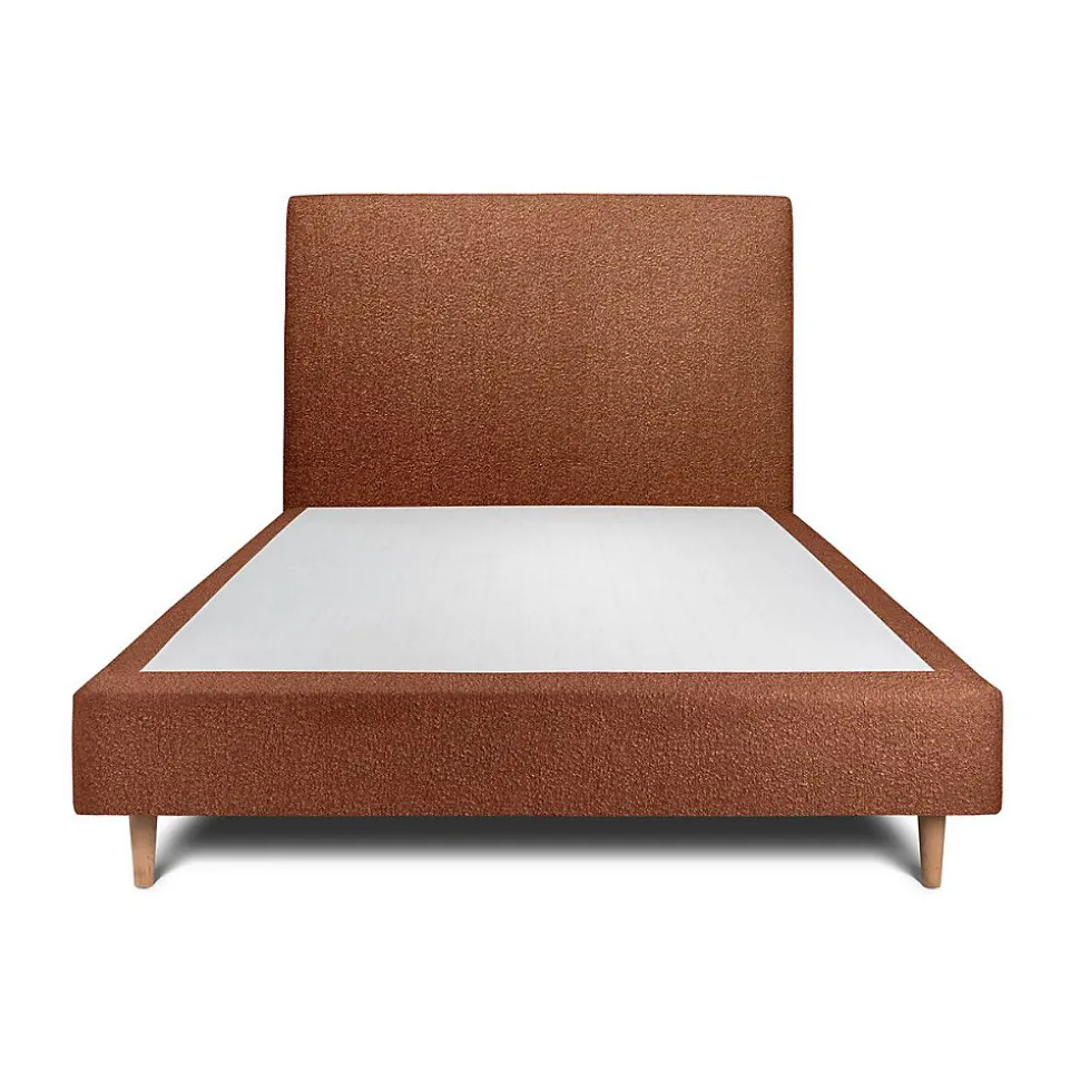 Lit avec tête de lit bouclette et sommier tapissier – Lit en bois massif