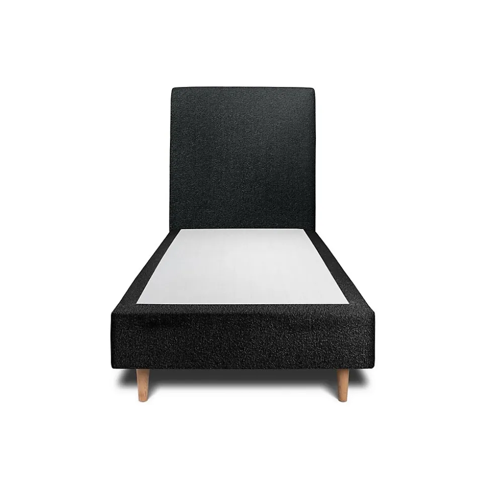 Lit avec tête de lit bouclette et sommier tapissier – Lit en bois massif