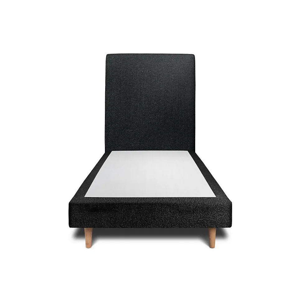 Lit avec tête de lit bouclette et sommier tapissier – Lit en bois massif